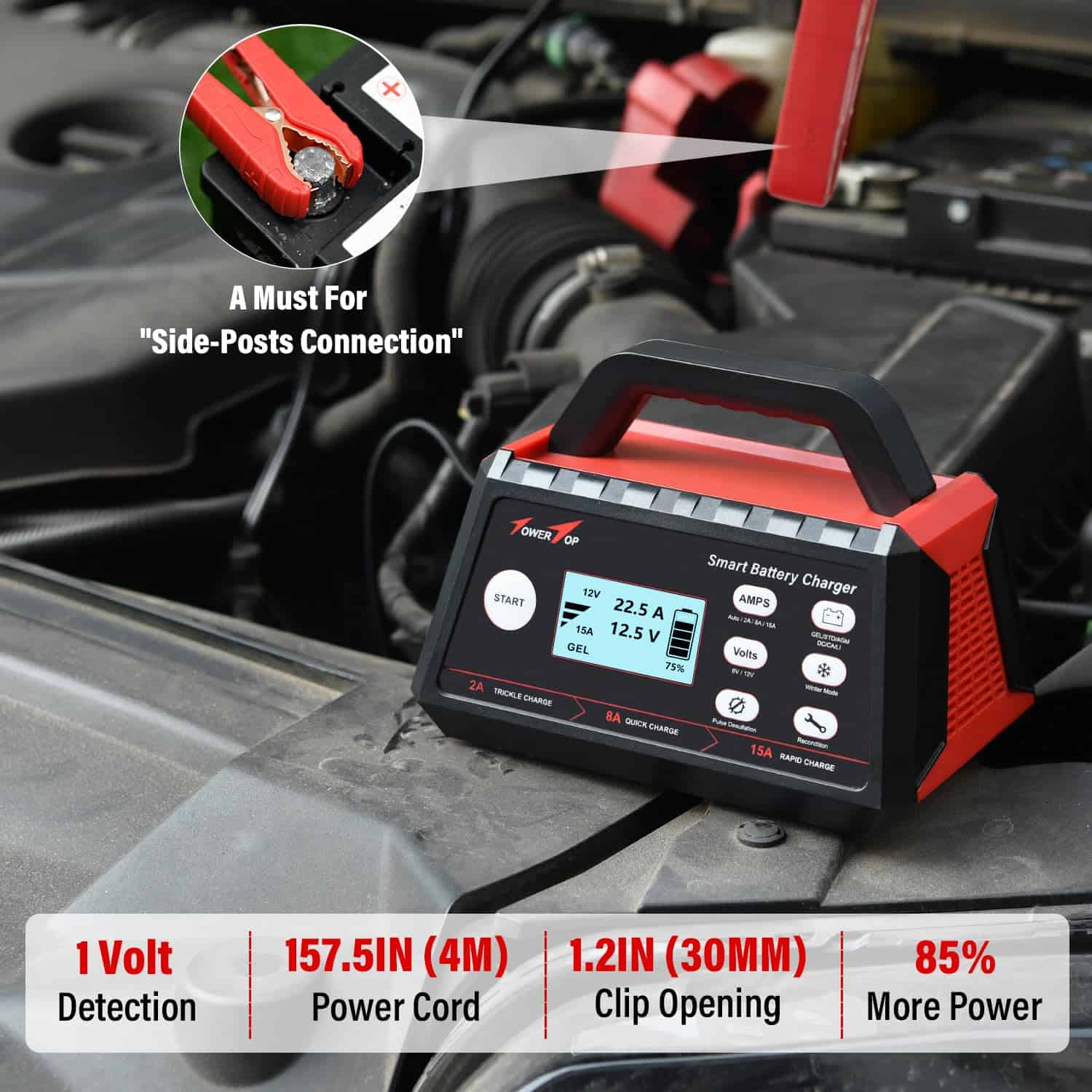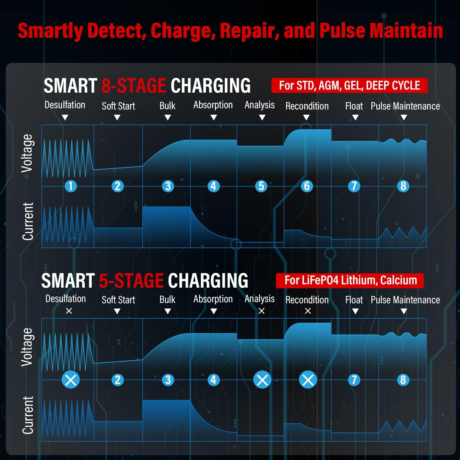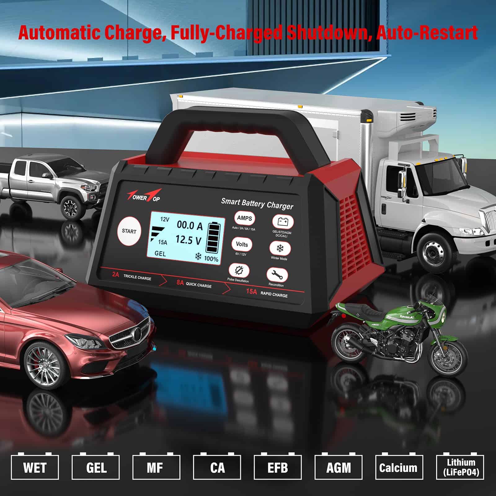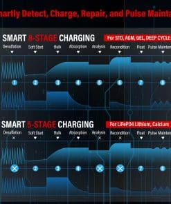 Carga baterías 12V AGM, Gel y STD en RVs, vehículos especializados, autos antiguos y clásicos, motocicletas, cortadoras de césped, cuatriciclos, motos de nieve, etc.