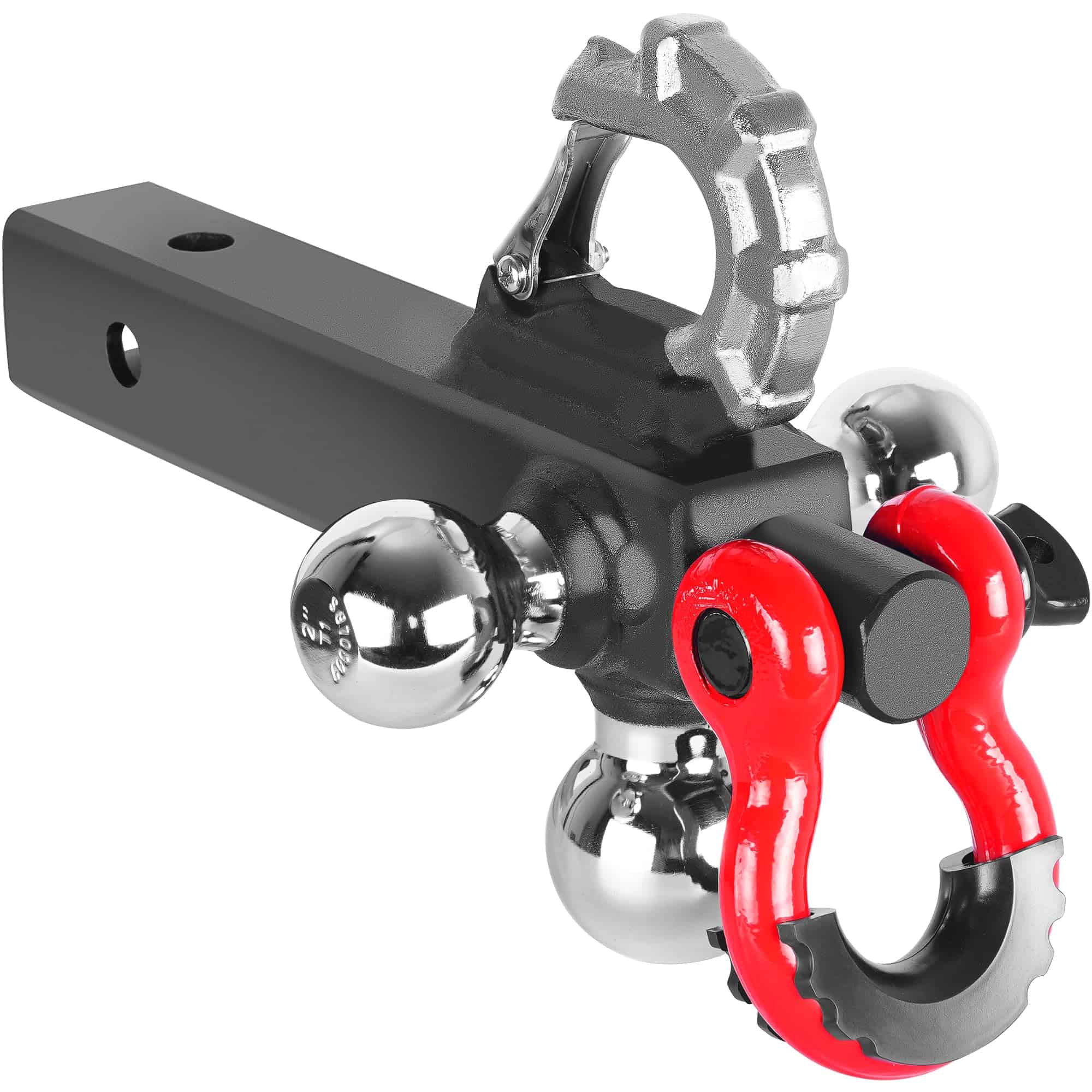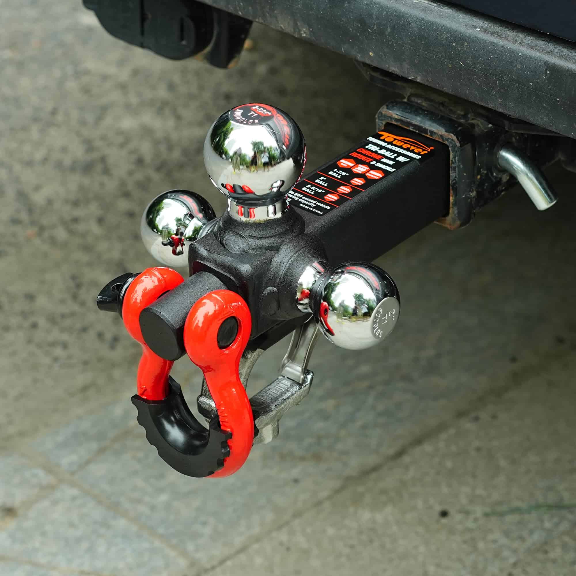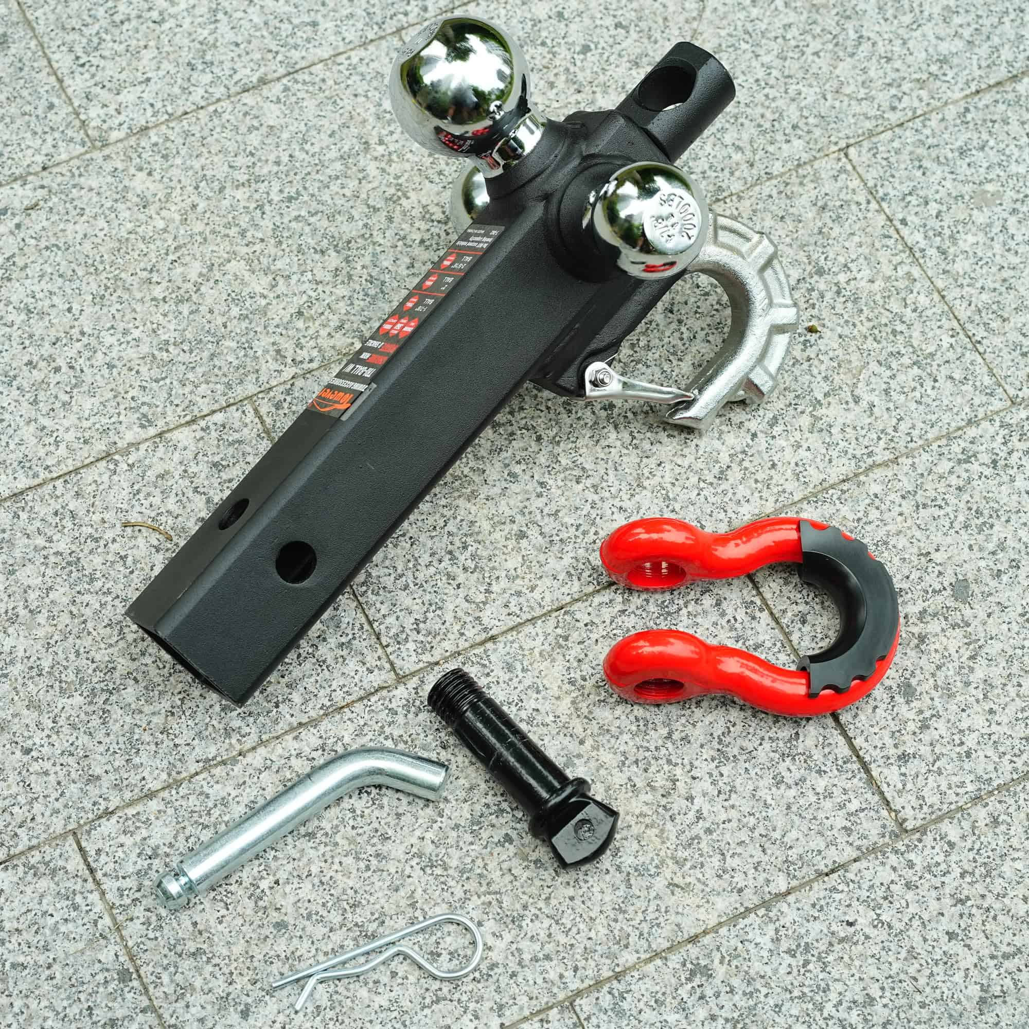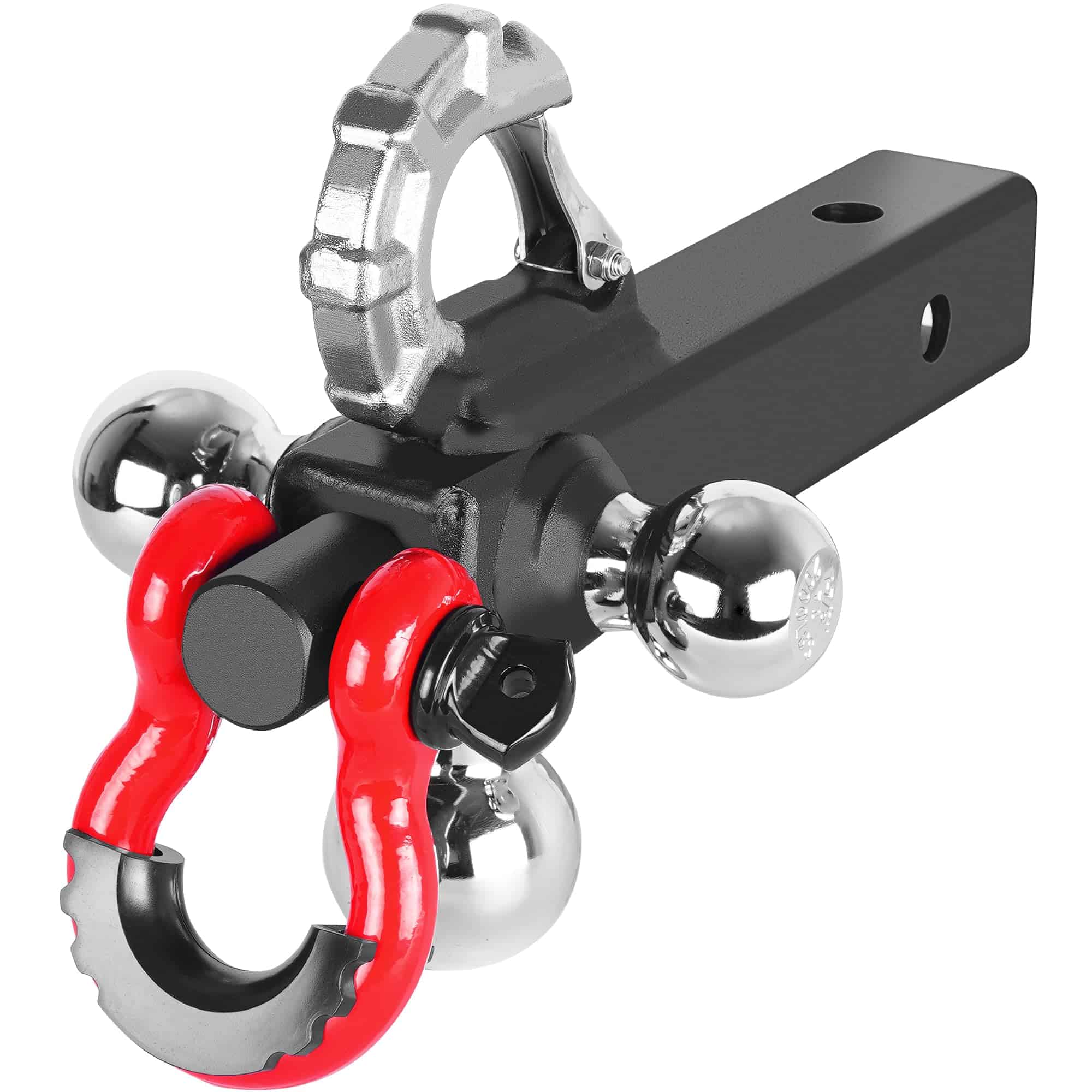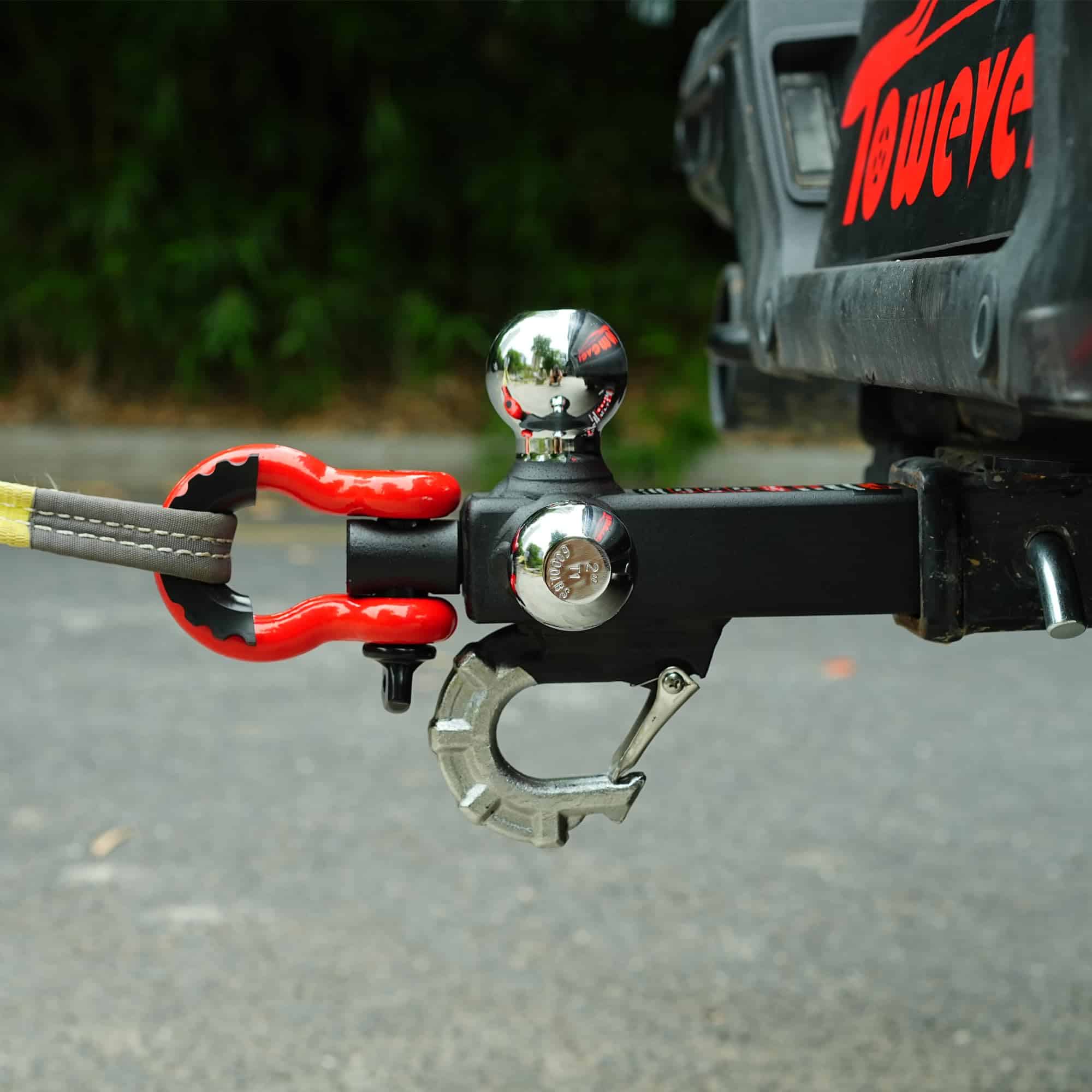 Presentamos nuestros notables enganches de bola para remolque, diseñados con una configuración única y versátil. Su enganche de bola doble y base giratoria de 360 grados, junto con un gancho de argolla de 3/4 de pulgada y Gancho Táctico, hacen que los enganches de remolque sean excepcionalmente adaptables para fines de remolque y recuperación.