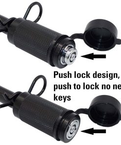 Descripción TowWorks 79833 Candado de Remolque Extra Largo con Llaves Iguales CARACTERÍSTICAS PRINCIPALES: 1). Pasador de bloqueo extra largo de 5/8″ con brazo de 4-1/2″, se ajusta a la mayoría de los enganches ajustables y receptores de enganche de 3″ x 3″; Este candado es compatible con enganches de estilo CURT 45900, 45901 y 45902; es compatible con ganchos de pluma ajustables de estilo CURT 45907 y 45908. Este candado NO es compatible con enganches ajustables FASTWAY. 2). El clip de resorte separado brinda comodidad y seguridad adicional, en caso de un cambio rápido de enganches mediante este clip sin tener que usar el candado, o incluso si el candado falla; 3). Los anillos de goma evitan los ruidos del pasador; 4). El diseño de bloqueo de giro de 1/4 y empuje facilita el bloqueo y desbloqueo; 5). La tapa de goma brinda protección adicional al mecanismo de bloqueo contra la humedad y la suciedad; 6). Este producto no es compatible con los porta bicicletas que tienen conexión roscada; 7). Este producto no es compatible con enganches con orificio para pasador de 1/2″; 8). Antes de comprar, verifique todas las dimensiones de su enganche para obtener un ajuste perfecto del pasador de bloqueo. ESPECIFICACIONES: Color: Negro Material principal: Acero y aleación de zinc y goma PAQUETE INCLUYE: 1 Pasador de bloqueo ajustable de 5/8″ 2 Llaves tubulares (Todas las llaves son iguales) 1 Clip de resorte 1 Tapa de goma 8 Anillos de goma 1 Manual de instrucciones