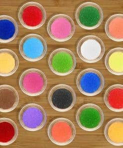 4. Suministros Esenciales de Arte y Manualidades: La arena de colores es popular por muchas razones. Los niños pueden disfrutar de horas de diversión dejando volar su imaginación, mientras que los adultos pueden usar la arena de colores para ceremonias de unidad de boda, arena para ceniceros, velas, bases de plantas artificiales y más.