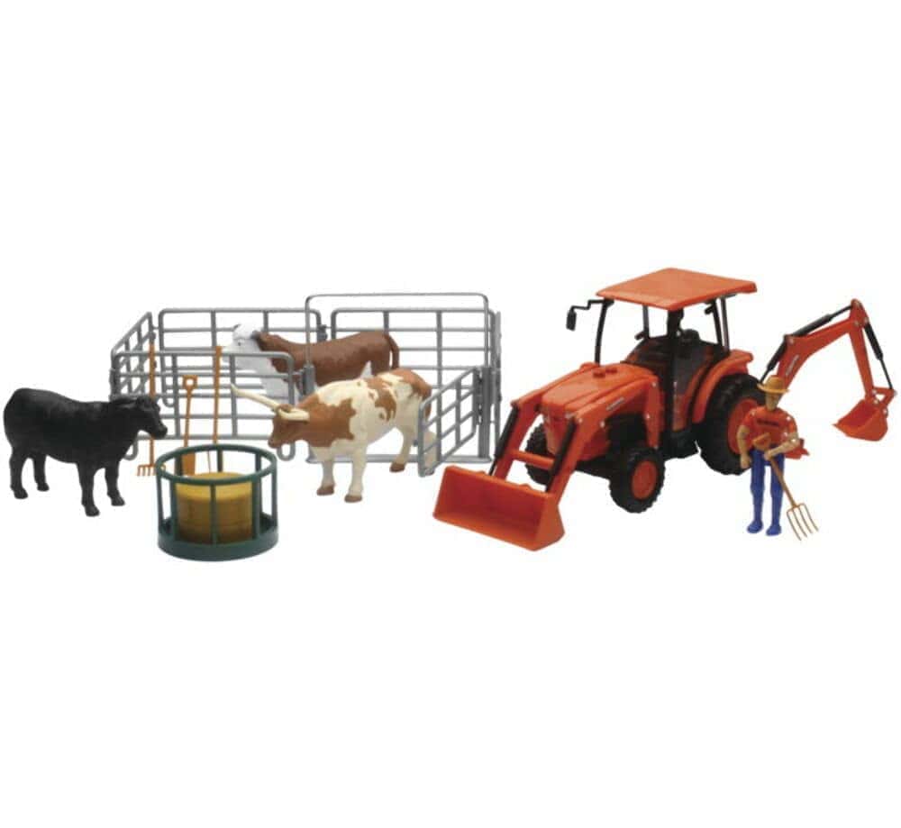 ¡Dale a tu hijo horas de diversión con este increíble juego de tractor de granja de Kubota de New-Ray! Este set incluye un detallado tractor de juguete Kubota junto con una figura de vaca para una experiencia de juego realista. Perfecto para los amantes de los tractores y la vida en la granja. ¡No te lo pierdas!