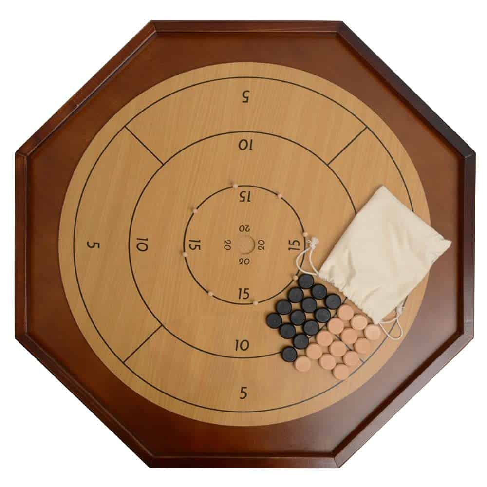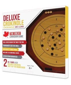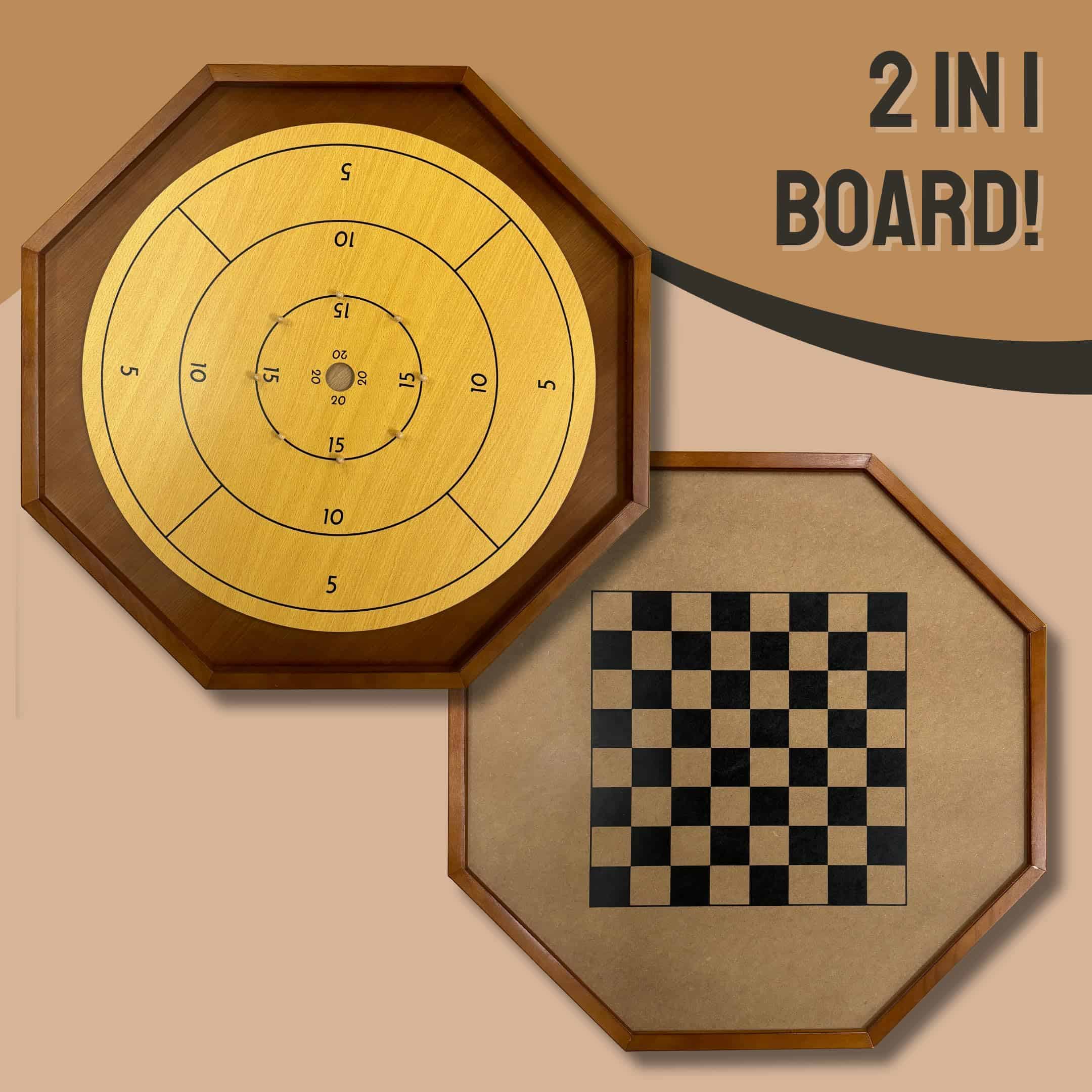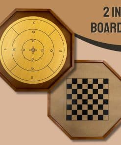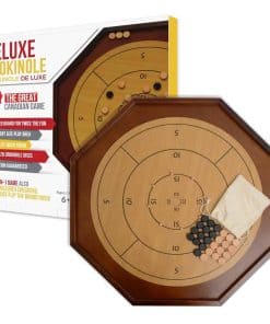 ¡El primero en llegar a 100 puntos gana! Te encantará la profundidad y estrategias que puedes desarrollar mientras aprendes un juego bastante sencillo. Por qué te encantará Nuestro tablero de Crokinole y discos están hechos de materiales de madera de alta calidad y terminados para proporcionar la cantidad justa de fricción. ¡El tablero mide 27 pulgadas y es de doble cara con un tablero de ajedrez debajo! ¡Incluye suficientes discos para jugar una partida de damas también, este tablero se convierte en una gran pieza central en cualquier sala de juegos o salón. Incluye instrucciones para Crokinole y bolsas convenientes para almacenar los discos en
