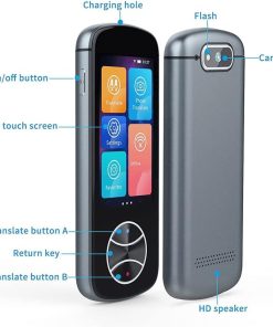 El Traductor de Idiomas es compatible con la traducción en línea y sin conexión integrada con una combinación de los principales motores de traducción de IA del mundo: Google, Microsoft y Nuance, admite 127 idiomas y acentos diferentes en línea. También está equipado con traductores sin conexión para 11 idiomas comunes: chino, francés, coreano, ruso, español, japonés, holandés, portugués, alemán, italiano, inglés. El traductor de voz sin conexión es muy útil para cuando pierdes la conexión a internet debido a tus circunstancias. Equipado con una pantalla táctil HD de 3.0 pulgadas, el traductor de idiomas tiene una cámara HD incorporada, admite la traducción de fotos en hasta 44 idiomas, y te ayuda a leer menús/señales de tráfico/revistas/etiquetas en diferentes idiomas de manera más intuitiva. El diseño de reducción de ruido de micrófono doble garantiza una entrada y reconocimiento de voz de mayor precisión. Se puede lograr un reconocimiento de voz de alta precisión a distancia en entornos ruidosos. Este traductor de voz multifuncional puede usar la conexión de punto de acceso/WiFi/Bluetooth para traducir. No se requiere tarjeta SIM ni aplicación, lo que significa que nuestras actividades de traducción no se verán restringidas por el entorno de red, lo que es más conveniente y práctico. El Traductor de Idiomas está diseñado en un estuche delgado, portátil, liviano y duradero en tamaño de bolsillo. Nuestro traductor de voz bidireccional tiene una batería grande incorporada de 1500mAh, que se puede utilizar de manera continua durante 8-15 horas, admite un tiempo de espera de hasta 7 días y se puede cargar completamente en solo 1-2 horas. La gran batería hace que el dispositivo de traducción instantánea sea adecuado para viajar, aprender idiomas extranjeros, aprendices de idiomas maternos, minoristas, profesores y estudiantes, etc.
