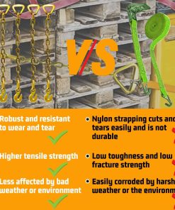 3. Cumplimiento de la seguridad – Las extensiones de cadena de remolque son de grado 80, con una capacidad de carga de 4900 Lbs por cadena. Factor de seguridad 4:1, cumpliendo con todas las regulaciones de DOT y CVSA. Y no hay necesidad de preocuparse por romperse debido a la fricción o cortes durante el transporte, seguro y confiable.
