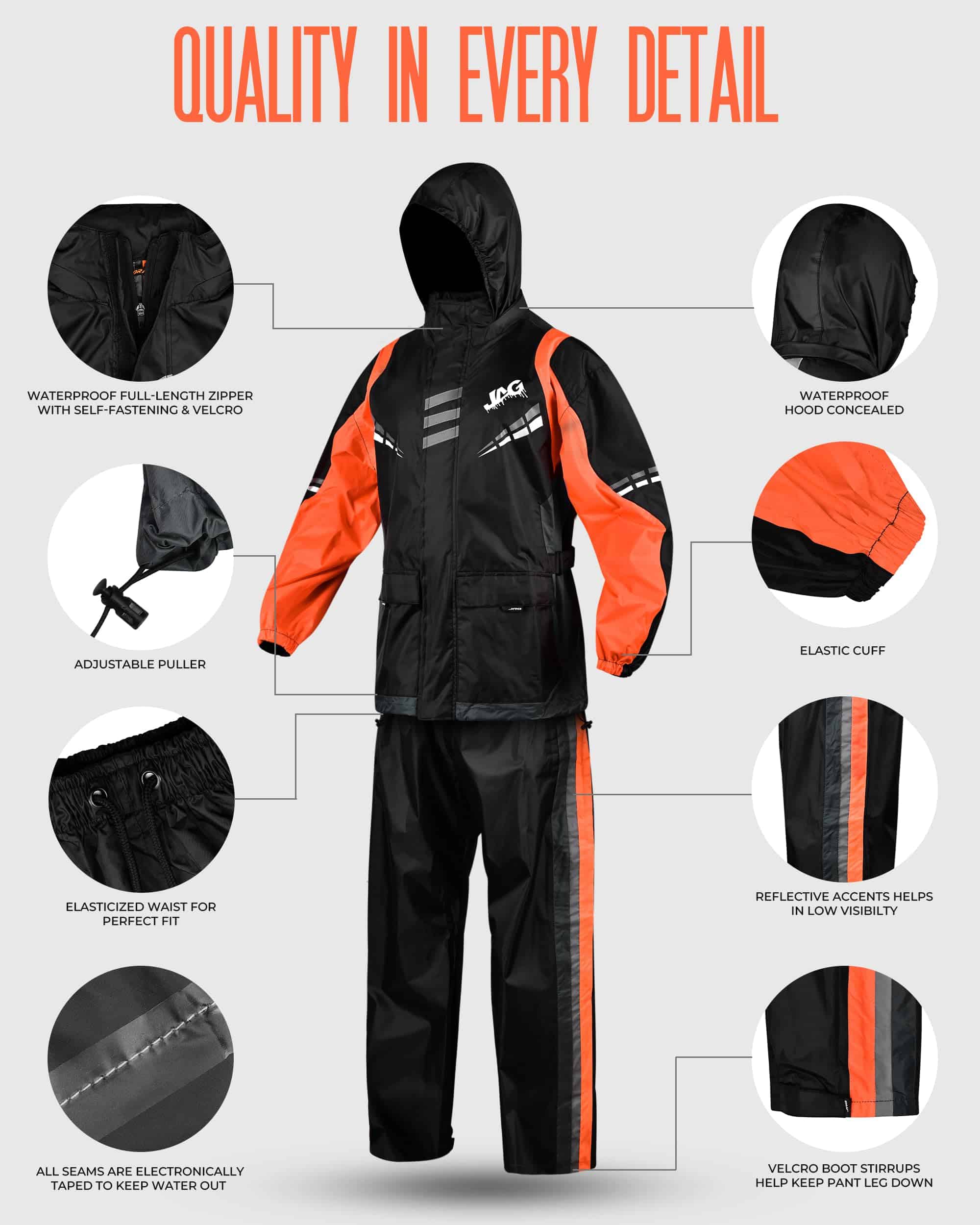 Traje de Lluvia Impermeable J.A.G. para Hombres -Naranja