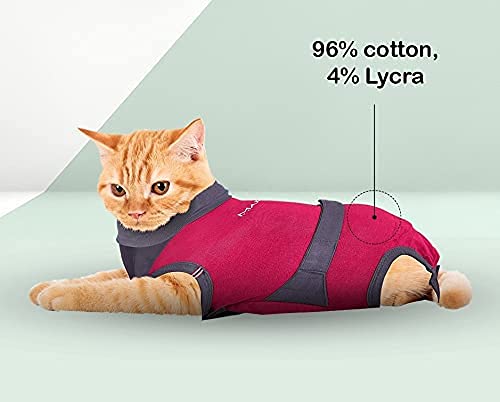 INSTRUCCIONES DE TALLAS Asegúrate de que tu gato esté de pie sobre una superficie dura. Mide la longitud de la espalda de tu gato desde el cuello hasta la base de la cola en línea recta, como se muestra en las imágenes. Tamaño 4XS longitud; 26-32 cm / 10.2-12.6 pulgadas Tamaño 3XS longitud; 30-37 cm / 11.8-14.6 pulgadas Tamaño 2XS longitud; 34-42 cm / 13.4-16.5 pulgadas Tamaño XS longitud; 41-45 cm / 16.1-17.7 pulgadas Tamaño S longitud; 44-51 cm / 17.3-20.1 pulgadas Instrucciones de uso: ¡Es muy fácil! 1) Coloca la camisa MAXX para gatos sobre su cabeza e inserta cada pata. 2) Deslízala fácilmente a lo largo del cuerpo de tu gato, ajusta las correas en forma de V y abrocha los clips en la parte superior cerca de la cola. 3) Abre la cremallera del bolsillo interno en el lado izquierdo de la camisa para gatos para guardar cualquier gasa para absorber descargas adicionales o para acceder a la herida o para guardar paquetes de hielo sin quitar la camisa. 4) Si la parte del vientre está suelta, ajústala con el cinturón abdominal para dar un ajuste ceñido. 5) Para la caja de arena, no es necesario quitar la camisa de gato ya que la parte trasera es más grande y pueden hacer sus necesidades diarias fácilmente. 6) Se puede lavar y secar a máquina. Recomendamos comprar 2 camisas MAXX para gato.