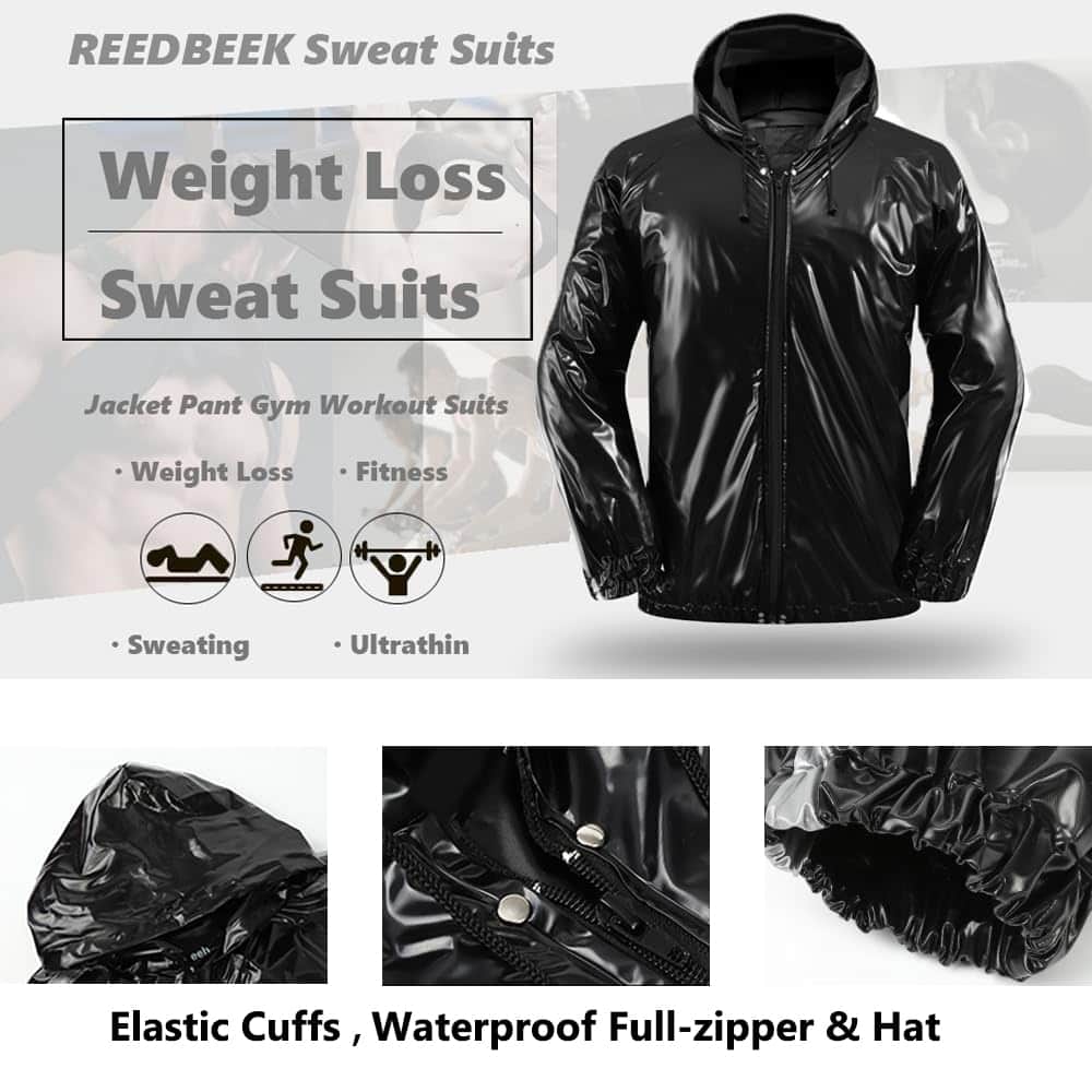 Los trajes de sauna REEDBEEK son perfectos para hombres y mujeres que buscan perder peso y mejorar su entrenamiento. Los modernos diseños te harán lucir atractivo mientras haces ejercicio en el gimnasio, corres al aire libre, montas en bicicleta o te ejercitas con equipamiento de ejercicio. La temperatura sanguínea aumentada por el traje de sauna prolonga la zona de quema de grasa, lo que resulta en la quema de más calorías y en la pérdida de peso. Además, la exposición al calor ayuda a estimular el crecimiento de las células musculares y a acelerar tu metabolismo. La tela cómoda no tiene olores desagradables, lo que te permite seguir moviéndote y ejercitándote con comodidad. El traje de sauna es excelente para protegerte del viento y la lluvia, ayudándote a mantener tu temperatura corporal y a quemar calorías de manera más efectiva. Recuerda consultar la tabla de tallas para elegir el tamaño correcto según tu peso y medidas de pecho.