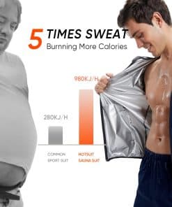 El traje de sauna para hombres de HOTSUIT es ideal para mejorar la efectividad de tu entrenamiento y hacer que sudes más durante tus actividades físicas. Este traje está diseñado con tela resistente al desgaste Silver-Heat REG de HOTSUIT que refleja el calor hacia el cuerpo, haciéndote sudar 5 veces más. Además, su diseño ligero y duradero te brinda mayor flexibilidad y comodidad durante tus ejercicios. Este traje de sauna es anti-rasgaduras, lo que te permite realizar cualquier movimiento sin restricciones. Además, su diseño a prueba de viento y agua te permite usarlo en cualquier estación del año. Sin mencionar que el traje de sauna HOTSUIT para hombres es libre de olores desagradables, a diferencia de otros trajes de neopreno baratos en el mercado. ¡Agrega productos HOTSUIT a tu carrito de compras y comienza tu camino hacia un cuerpo más delgado!