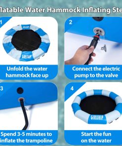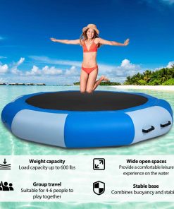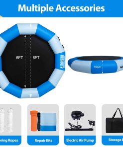 Este trampolín acuático inflable de 8 pies es perfecto para relajarte en el agua o disfrutar saltando. Con su diseño 2 en 1, puedes convertirlo en una hamaca flotante o en un trampolín para divertirte en el agua. Diseñado para proporcionarte una experiencia acuática cómoda y única, este trampolín es portátil y fácil de llevar a cualquier lugar, ya sea en un lago, piscina u océano. ¡Disfruta de horas de diversión acuática con este trampolín acuático de alta calidad!