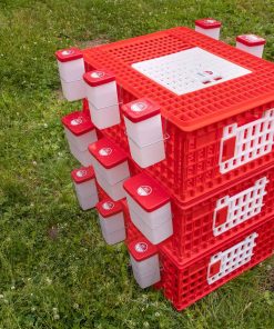 Acerca de este artículo Orificios más pequeños en el piso que en los lados. ¡Almohadilla de confort opcional incluida! Agarres en los extremos para levantar y transportar. CONECTE BEBEDEROS. Asegúrese de que sus aves tengan acceso al agua colocando los bebederos de pezón de 1L o 2L de RentACoop en los lados (bebederos se venden por separado). Se envía plano y se ensambla fácilmente a mano. (No se necesita mazo de goma). ¡Tres puertas en total! ¡Una puerta superior y dos puertas laterales! Instrucciones del producto y Especificaciones Vea Nuestro Video Instructivo