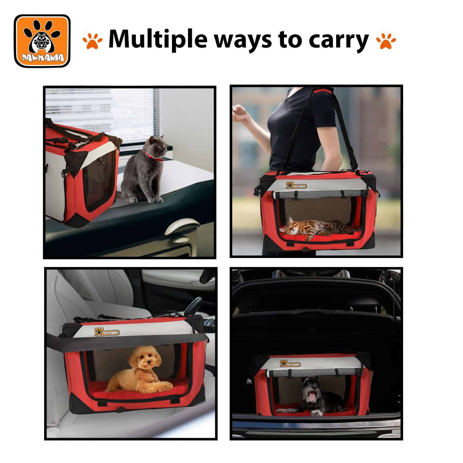 1. DISEÑO ESPACIOSO – Transportadora de gatos premium grande, diseñada para acomodar cómodamente hasta dos gatos/perros, proporcionando un amplio espacio para su comodidad durante los viajes o en casa.