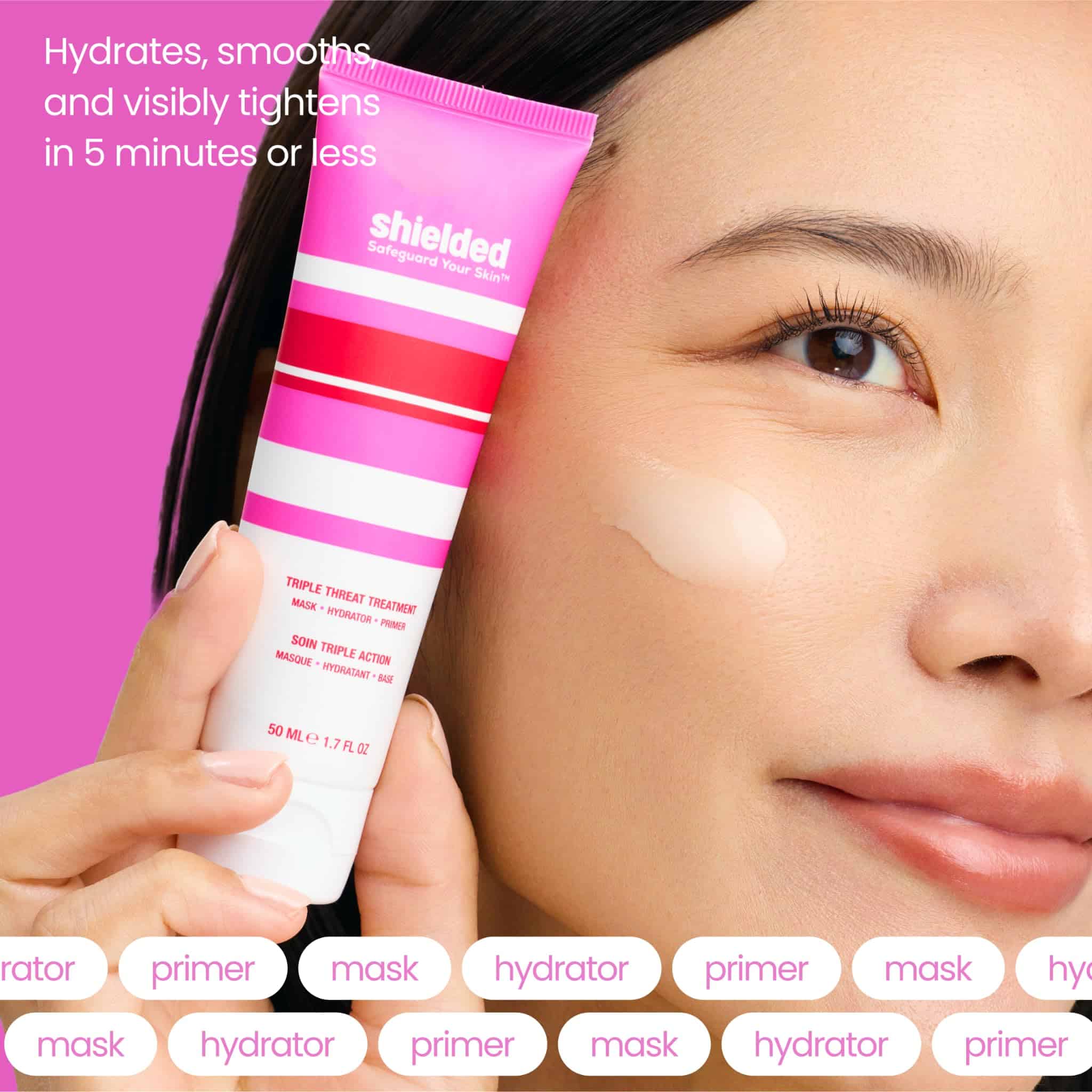 ¡Descubre el verdadero poder del Tratamiento Facial Hidratante Reafirmante Shielded Beauty Triple Threat! Este innovador producto combina los beneficios de la hidratación, la protección y la firmeza para brindarte una piel radiante y resistente. Con potentes antioxidantes como Astaxantina y Citrato de Plata, tu piel estará protegida contra los agresores ambientales mientras promueve un cutis saludable. Además, la fórmula está enriquecida con Sodio Hialuronato, Aceite de Jojoba y Glicerina para proporcionar una hidratación profunda y mejorar la textura de tu piel. Los extractos botánicos de Marrubium Vulgare, Withania Somnifera y Raíz de Achicoria calman, suavizan y revitalizan tu piel. Con nuestro compromiso con la belleza limpia, puedes estar seguro de que este producto es libre de productos químicos agresivos, está diseñado para todo tipo de piel y es perfecto para el uso diario. ¡Potencia tu rutina de cuidado de la piel con el Tratamiento Facial Hidratante Reafirmante Shielded Beauty Triple Threat!