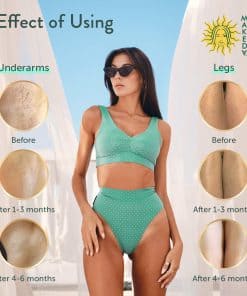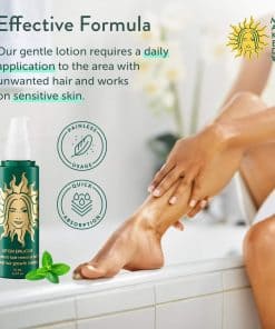 Además de inhibir el crecimiento del vello, la loción también ayuda a minimizar la irritación, inflamación, enrojecimiento y picazón de la piel, a eliminar el mal olor en las axilas y área íntima, así como a reducir las manchas oscuras y la pigmentación en la piel, dejando la piel más luminosa y saludable. El producto ha sido dermatológicamente testado y no contiene ingredientes dañinos ni ha sido probado en animales.