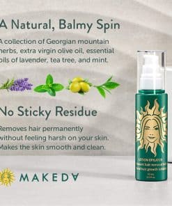 Tratamiento para el vello encarnado Makeda Lotion es un producto efectivo diseñado para el cuidado de la piel después de la depilación tanto para mujeres como para hombres. Su fórmula única se filtra en los poros abiertos para reducir el crecimiento del vello inhibiendo la actividad de las células del folículo piloso. El producto actúa primero ralentizando la formación de nuevo vello a nivel de la raíz y posteriormente reduciendo la densidad y el grosor del vello, lo que resulta en una piel suave y libre de vello no deseado.