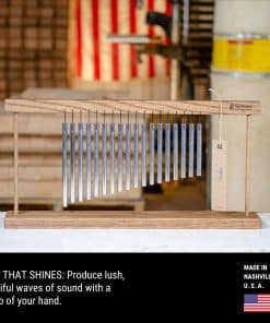 En TreeWorks Chimes, nos especializamos en la fabricación de instrumentos de percusión excepcionales y de alta calidad hechos en Estados Unidos desde nuestra pequeña tienda en Nashville, Tennessee utilizando materiales de origen local. Nuestra especialidad comenzó con la fabricación artesanal de chimes (a veces llamados bar chimes, wind chimes o chime trees). Estos instrumentos están increíblemente bien hechos y producen ondas de tono exuberantes y hermosas con un barrido de su mano. Son simples de tocar. Use su dedo para arrastrar a lo largo de la cara de las barras de chime justo debajo del agujero donde se montan las cuerdas, y deje que un chime caiga suavemente en el siguiente…