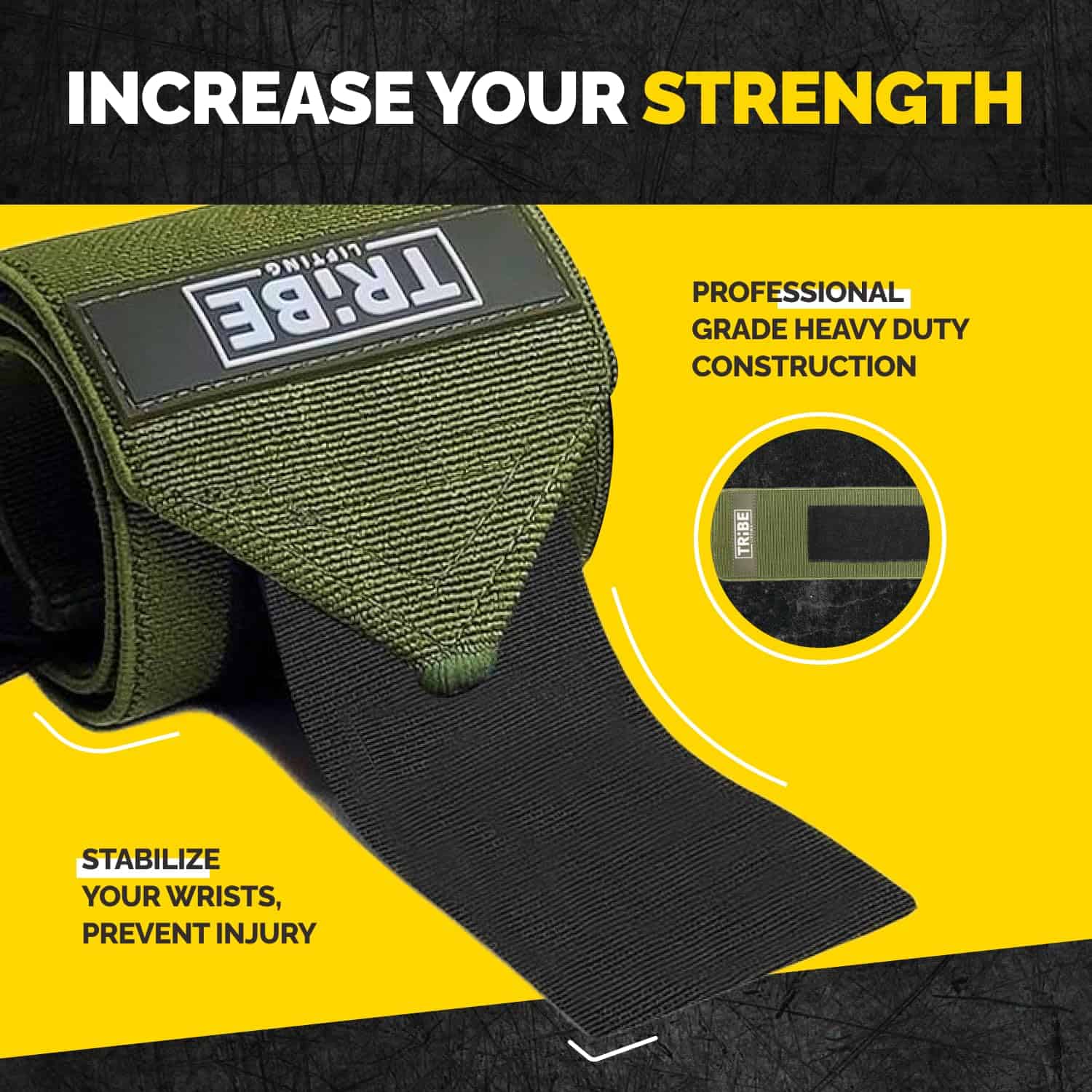 Presentamos las Envolturas de Muñeca Tribe Lifting de 18″, tu compañero definitivo para un soporte de muñeca superior durante entrenamientos intensos.