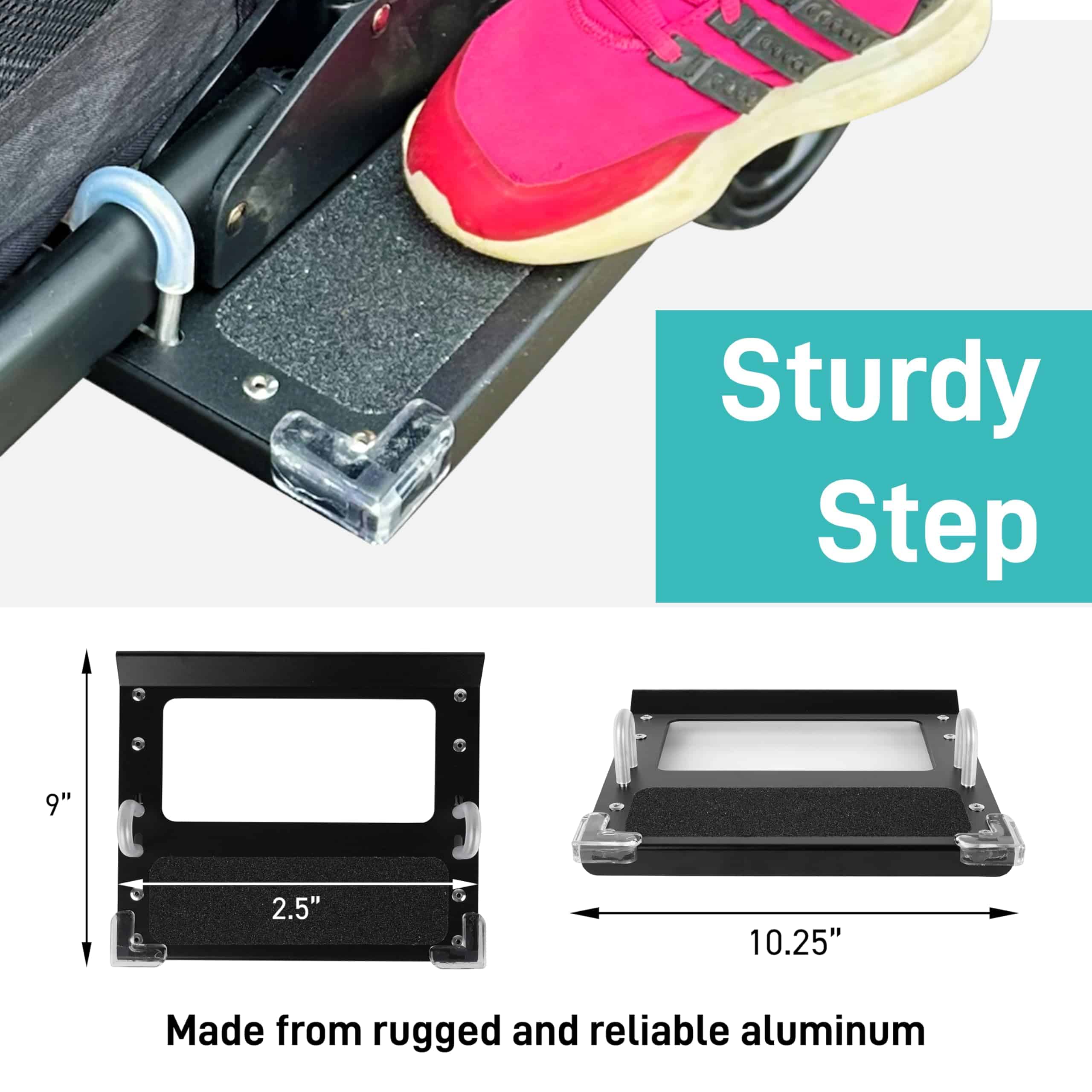 1. Fácil acceso para niños: Mejora tu carriola Wonderfold con nuestro conveniente accesorio de escalón que permite a los niños subir y bajar sin esfuerzo por sí mismos, haciendo que cada viaje sea más fácil y fomentando un sentido de autonomía. 2. Opciones de colocación versátiles: Compatible con cualquier lado de la carriola, el escalón ofrece opciones de colocación flexibles para adaptarse a las preferencias tuyas y de tu hijo. El escalón NO es compatible con la carriola W2 u otras marcas. 3. Diseñado para los más pequeños: El escalón para niños incluye esquinas de confort para prevenir rasguños y una superficie antideslizante para evitar que los zapatos de los niños resbalen. 4. Ajuste y tamaño perfectos: Diseñado para complementar tu carriola Wonderfold W4, el escalón mide 10.25″ de ancho, proporcionando un amplio espacio para un uso seguro y fácil por parte de los niños.