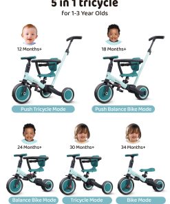 4 Modos: modo de empuje de dirección de los padres, modo de triciclo, modo de bicicleta de equilibrio y modo de bicicleta. Triciclo multifuncional adecuado para niños y niñas de 1, 2,3 años.