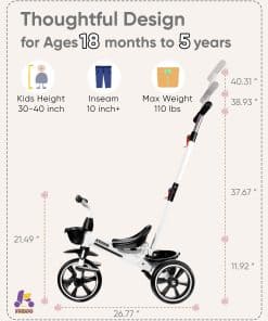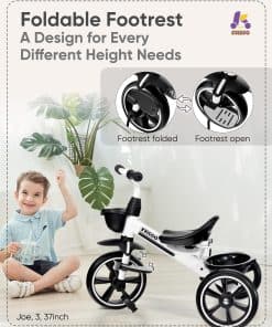 Triciclo para Niños KRIDDO 2-en-1 para Edades -Blanco