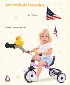 KRIDDO Kids Tricycle for 18 Months to 3 Years, Foldable Toddler Tricycle with Storage Basket, Kids Trike for 2 Years, Adjustable Easy to Carry Ergonomic Seat, Stable Structure for Smooth Ride, Purple