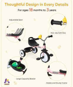 El triciclo KRIDDO, diseñado para niños de 18 a 36 meses, es perfecto tanto para niños como niñas, inspirando la curiosidad y emoción mientras exploran. Ayuda en el desarrollo de habilidades tempranas de dirección, equilibrio y coordinación, fortaleciendo los músculos y fomentando la autoconfianza. El diseño de plegado con un clic permite una portabilidad excepcional y ahorro de espacio. El asiento ergonómico ajustable se adapta a niños de 18 meses a 3 años, ofreciendo comodidad y un ajuste perfecto. La prioridad de seguridad de KRIDDO se refleja en la construcción con materiales de alta calidad, cumple con las normas de seguridad de juguetes de EE. UU. y presenta una estructura inteligente. Las características adicionales, como el pato que hace sonidos y la bandera, añaden diversión a la experiencia de montar en triciclo.