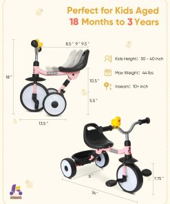Triciclo para Niños KRIDDO de 18 Meses a 3 -Rosa
