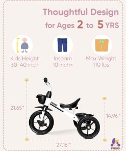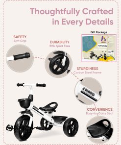 Triciclo para niños KRIDDO de 24 meses a 4 -Blanco