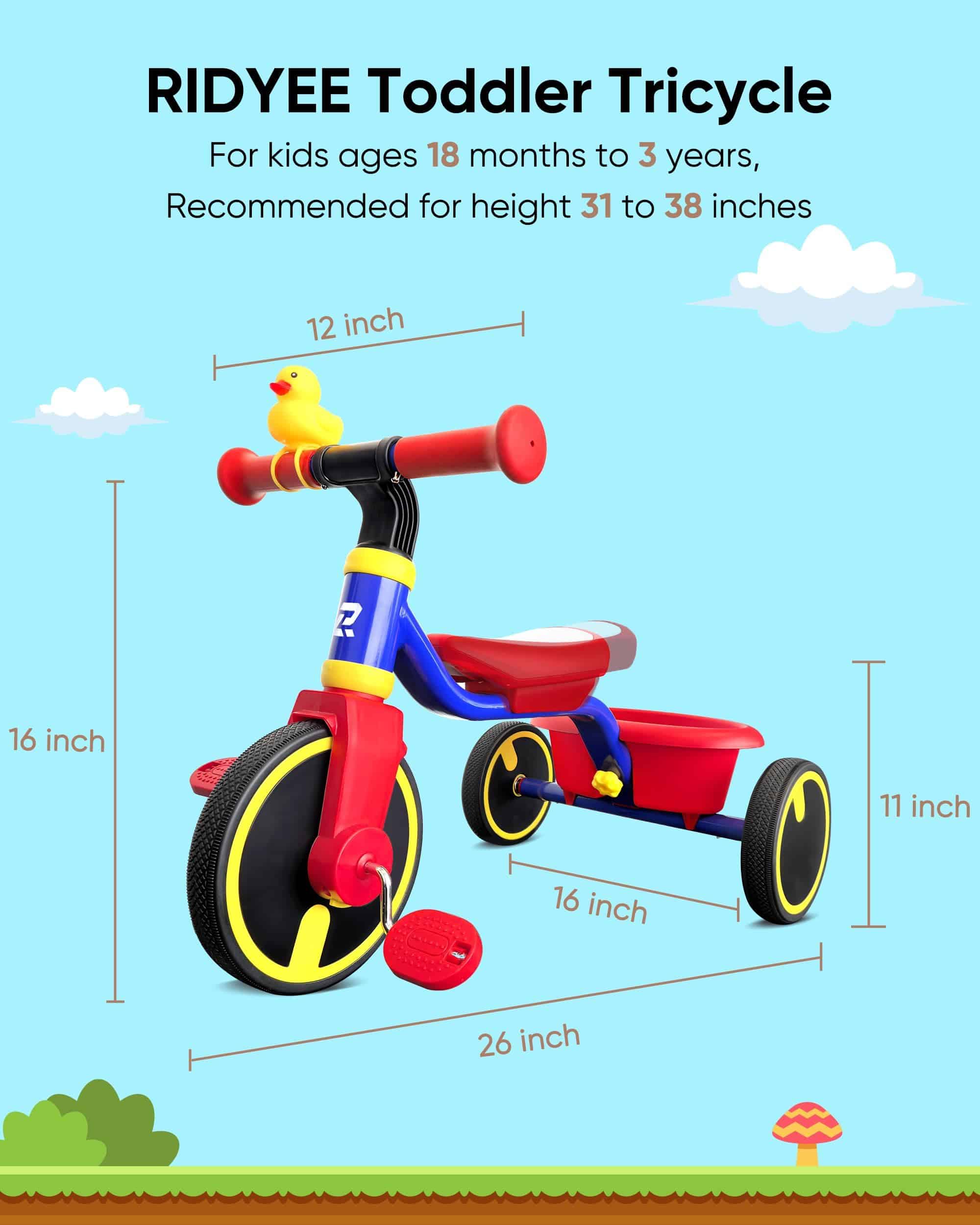 Triciclo RIDYEE para niños de 1 a 3 años, triciclo para