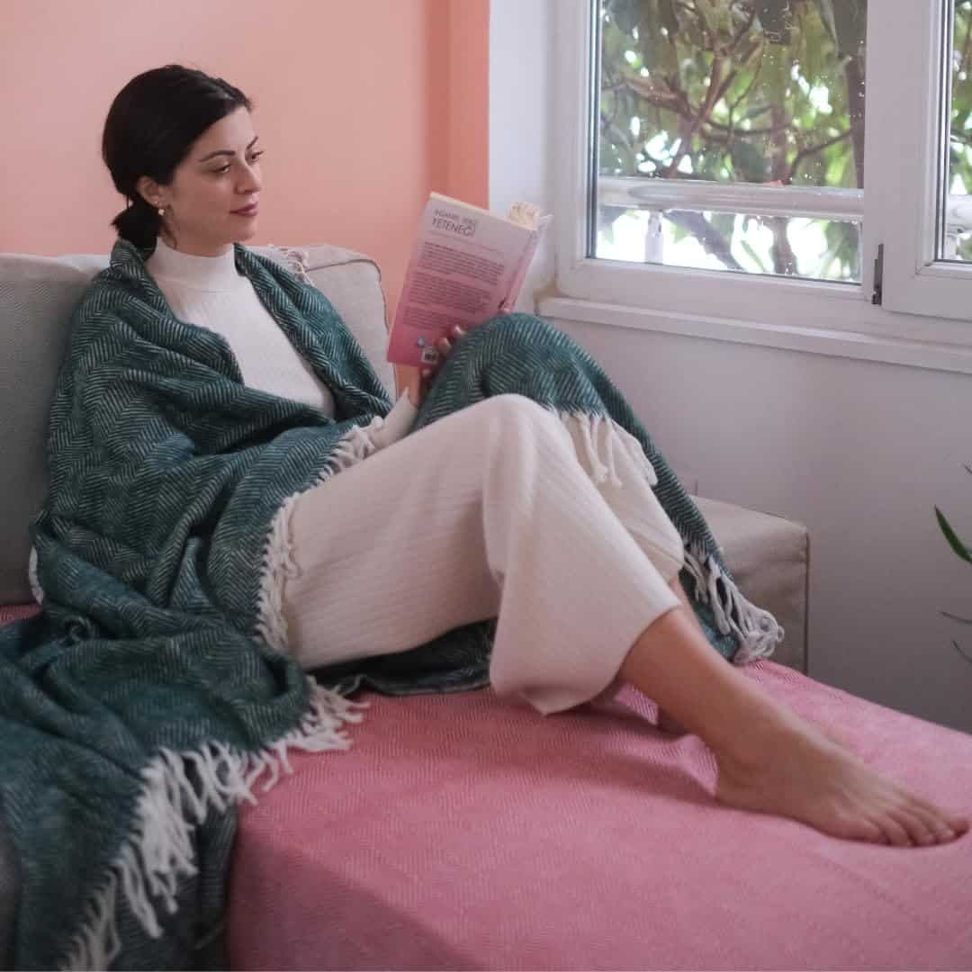 La manta Trimita Original Herringbone es ideal para usar en el sofá, cama o sofá, hecha de algodón certificado OEKO-TEX para brindar suavidad y comodidad. Con un diseño de espiga en color verde, esta manta es acogedora y decorativa al mismo tiempo. Con unas dimensiones de 59″x79″, es perfecta para mantenerte abrigado durante las noches frías.