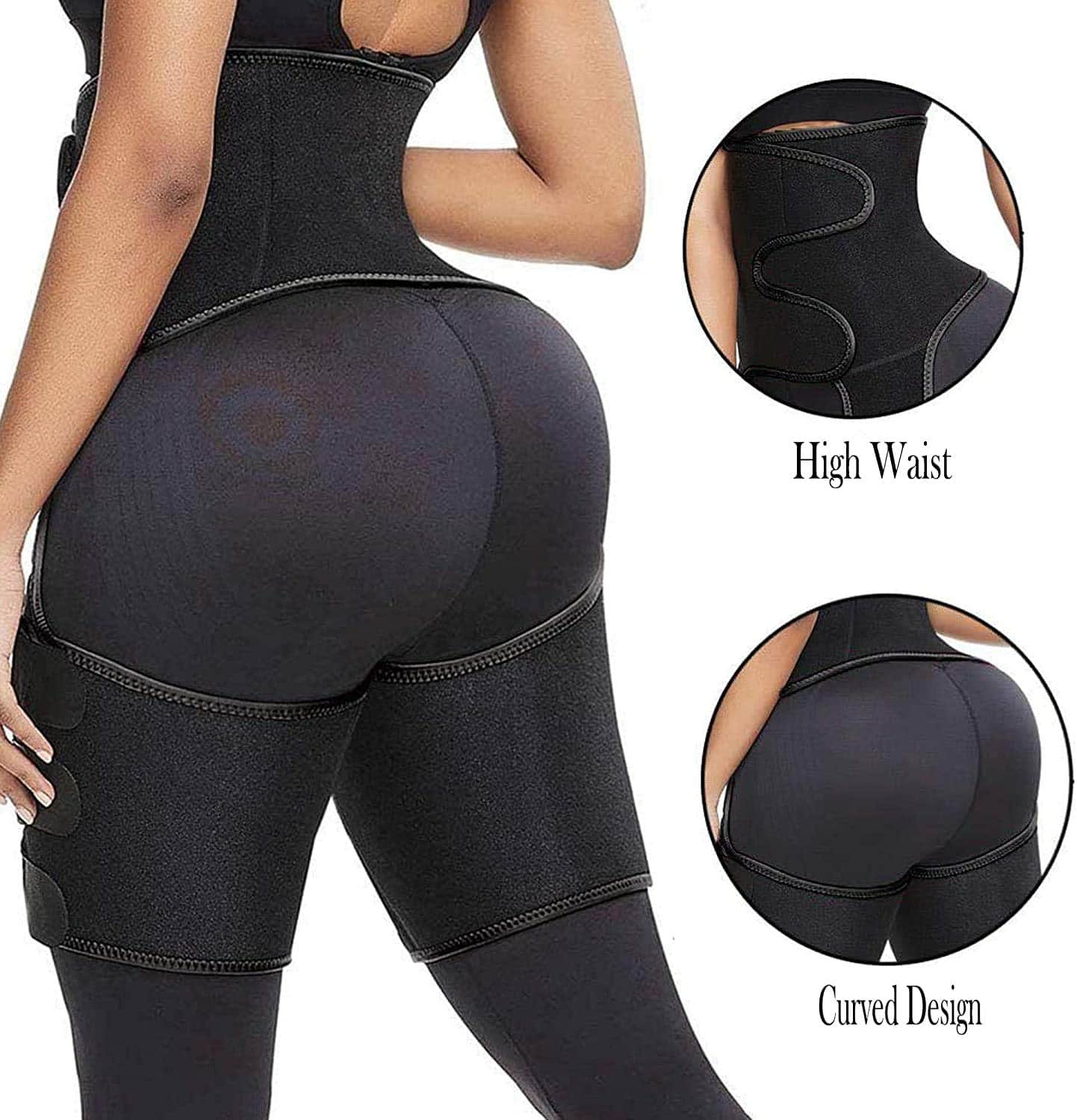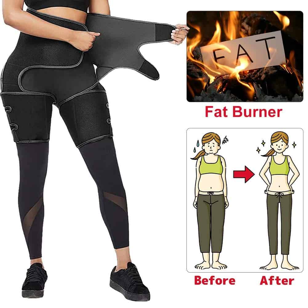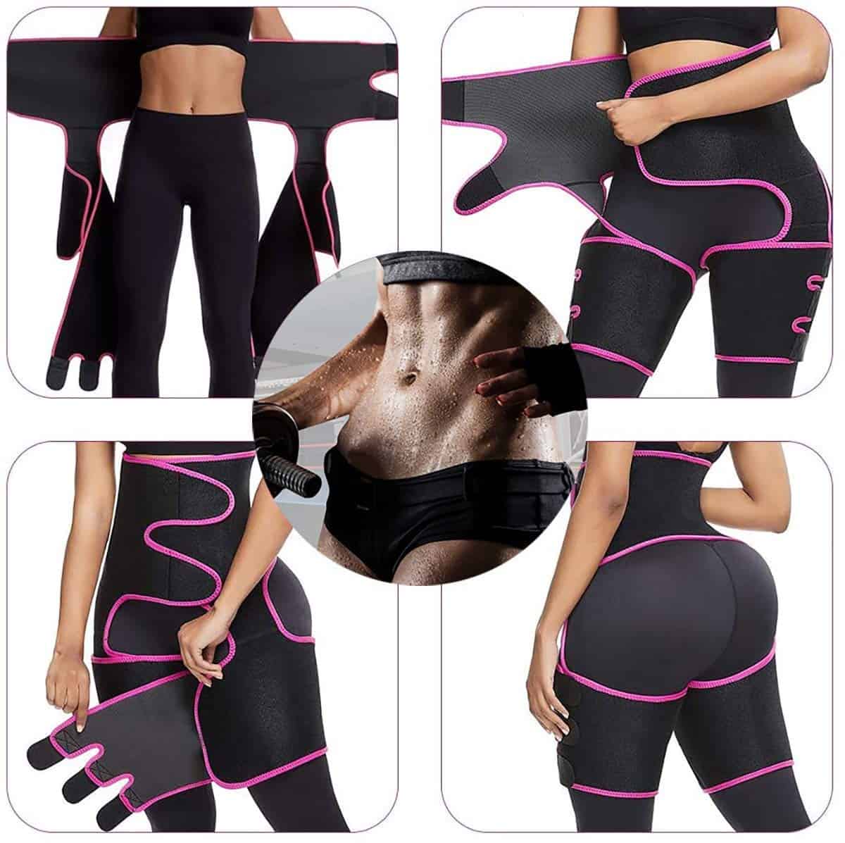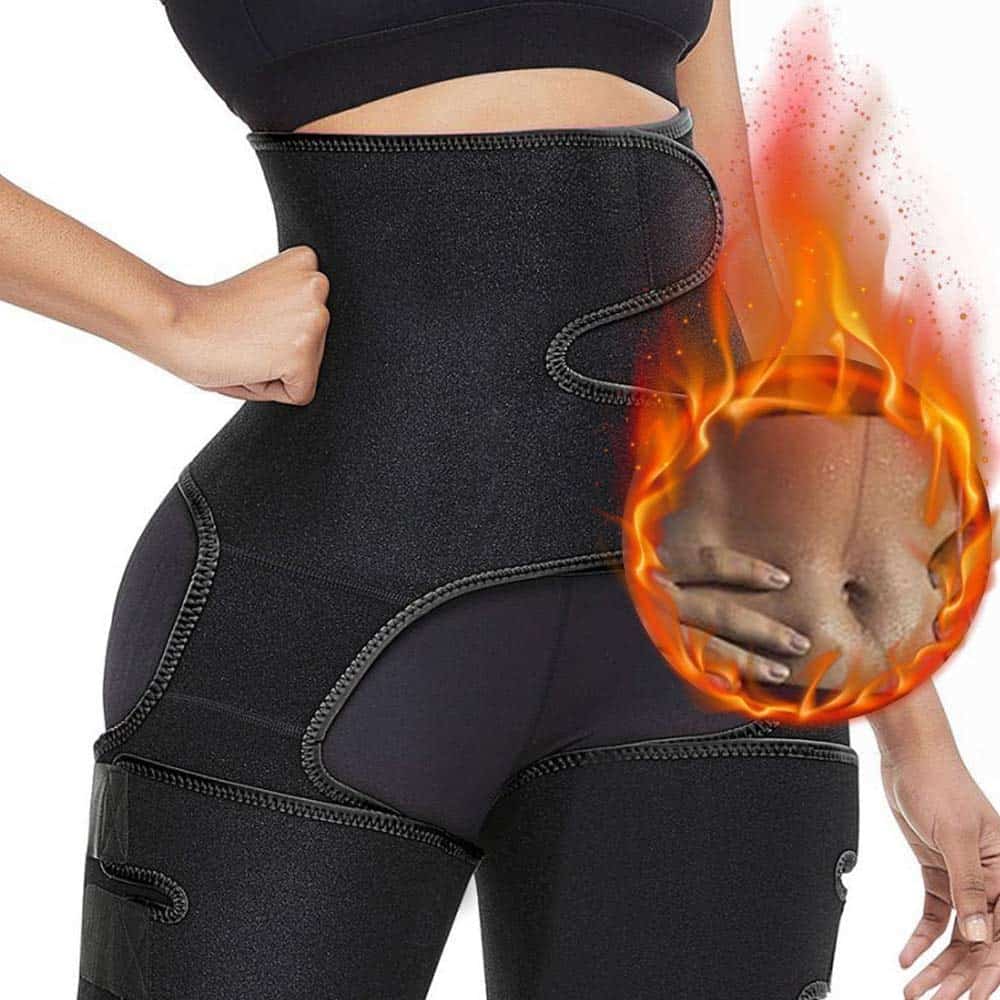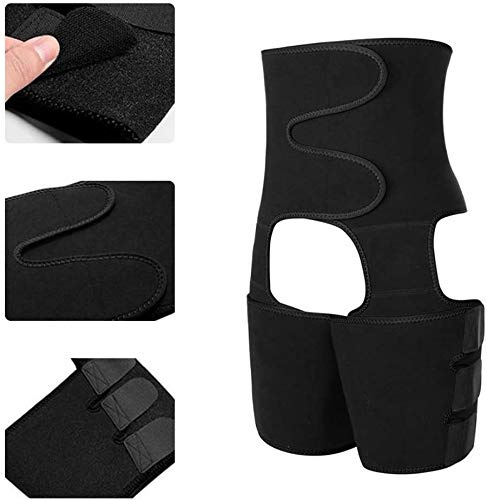 La faja de pérdida de peso quemador de grasa 3 en 1: cinturón de cintura alta, trimmer de muslo y levantador de caderas, está hecha de poliéster elástico, que mejora la quema de grasa del vientre y muslos, levanta tus glúteos al mismo tiempo y da forma a una curva de figura perfecta. Fácil de poner y quitar, el gancho y lazo se pueden ajustar flexiblemente para adaptarse a la cintura y muslos. No pica ni irrita la piel, alivia la rigidez muscular y aumenta la circulación sanguínea.