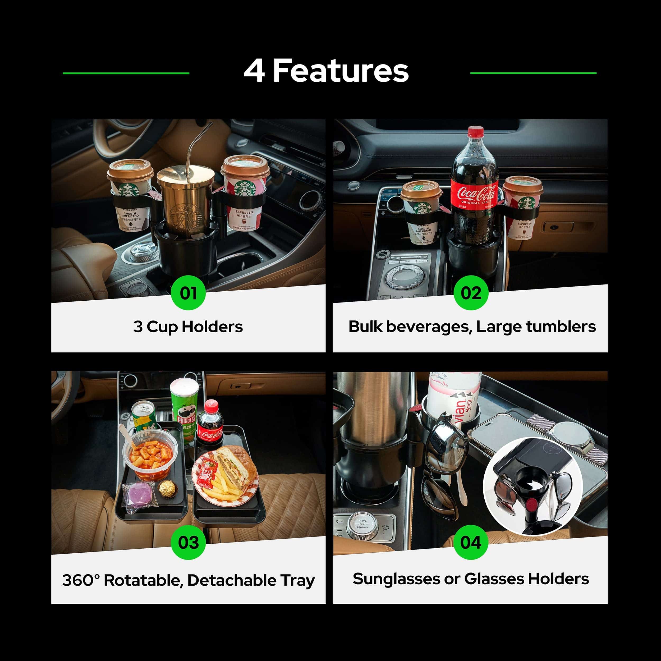 Triple Portavasos Expandible para Autos con Bandeja