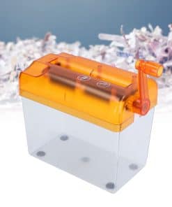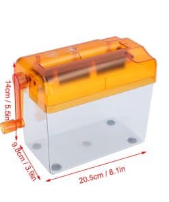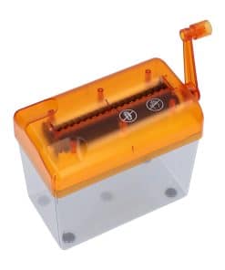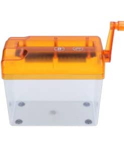 Trituradora de papel manual portátil en color naranja. Esta trituradora de papel manual compacta y simple es perfecta para la oficina, el escritorio en casa y más. Tritura eficazmente documentos y tarjetas de crédito de forma segura. La trituradora de papel cuenta con una estructura compacta que no ocupa mucho espacio y es fácil de usar. Hecha de materiales de excelente calidad como ABS y silicona para mayor durabilidad. La trituradora portátil tiene un diseño transparente que facilita la observación de la operación. Reduce el desorden y mantén tus documentos seguros con esta práctica trituradora de papel manual.