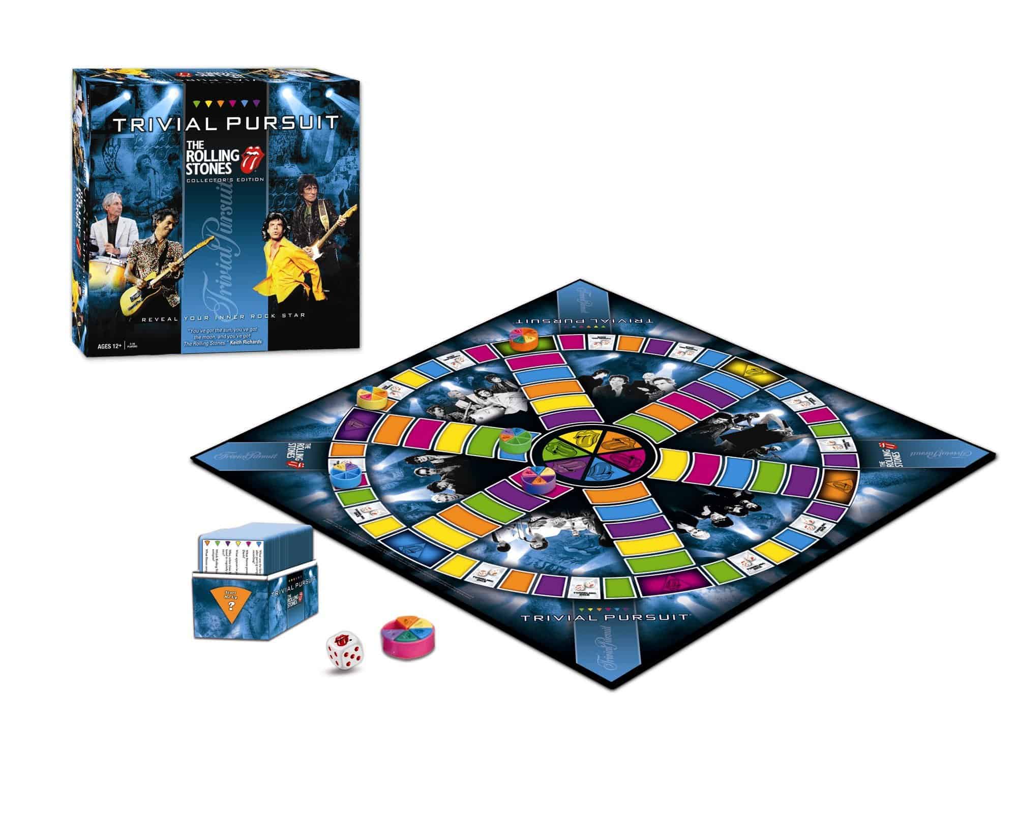 El Trivial Pursuit edición coleccionista de The Rolling Stones es un imprescindible para los fans del rock and roll. Mientras que las reglas básicas del juego clásico no han cambiado en esta edición, todas las preguntas se centran en «la mejor banda de rock and roll del mundo». Pon a prueba tu conocimiento sobre biografías de la banda, títulos de canciones, letras, conciertos y datos aleatorios de los Stones. Completo con imágenes de los miembros de la banda en toda su gloria musical, el juego brinda a los fans de 12 años en adelante la oportunidad de poner a prueba su conocimiento de los Stones.