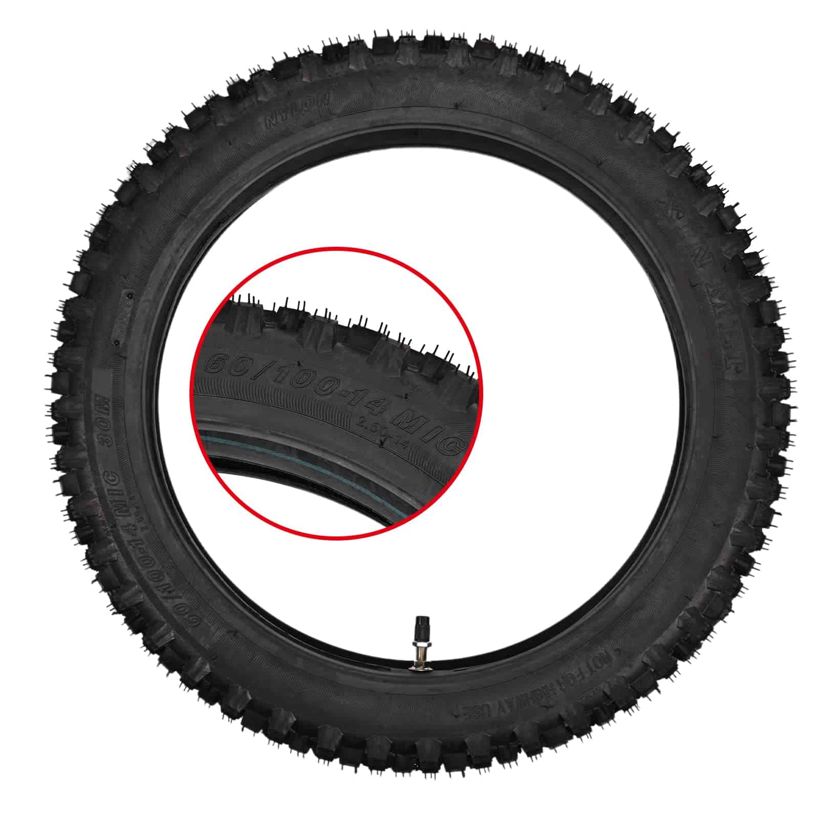 4. Tamaño del neumático delantero 60/100-14 apto para llanta de 14 pulgadas, por favor verifique los detalles y el tamaño para asegurarse de que esta pieza se ajuste.