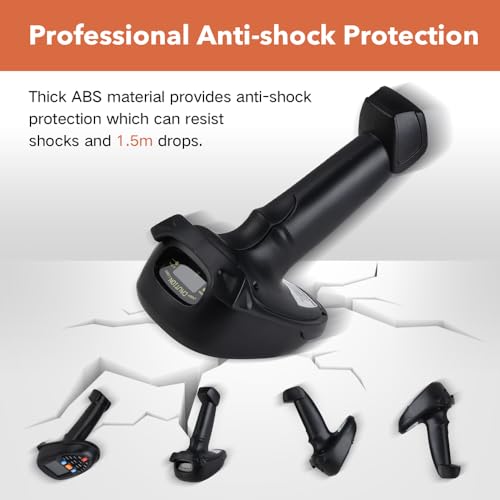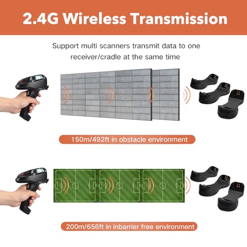 4. Largo Rango de Transmisión El escáner de código de barras inalámbrico Trohestar ofrece hasta 200 m / 656 pies de distancia de transmisión en un entorno sin barreras, y ofrece hasta 50 m / 164 pies de transmisión bajo obstáculos. Adecuado para diferentes tipos de gestión de inventario, como: Express, Logística, Almacén, Mayorista, Librería, supermercado, etc.