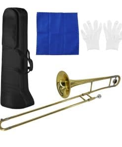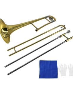 Trombón Alto de Latón con Recubrimiento de Oro en Bb con Boquilla de Cuproníquel y Estuche: Este trombón alto es un instrumento de viento profesional en tono Bb, que le brinda una experiencia musical de alta calidad. Está hecho de pistón de cuproníquel y latón chapado en plata, ofreciendo una calidad y durabilidad superiores. Viene con una boquilla de cuproníquel, varilla limpiadora, un par de guantes y estuche rígido, brindándole una experiencia de usuario completa. Ya sea estudiante, principiante o profesor, este trombón alto es una excelente elección para todos. Está diseñado para ser simple y fácil de aprender y tocar, convirtiéndolo en una herramienta ideal para aprender música.
