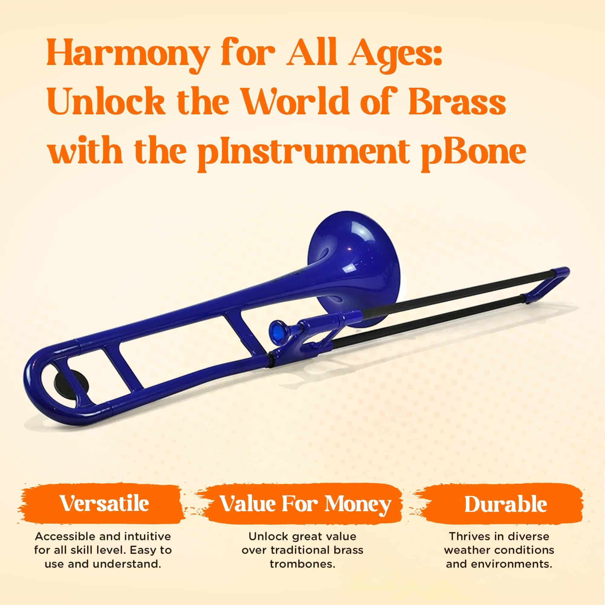 Diseñado por músicos galardonados, el trombón pBone es una opción respetuosa con el medio ambiente y virtualmente indestructible, lo que lo convierte en una excelente opción para niños y estudiantes de trombón. Aprobado por Maestros de Música, este instrumento ofrece un sonido auténtico y confiable que inspira a los músicos a alcanzar su máximo potencial.