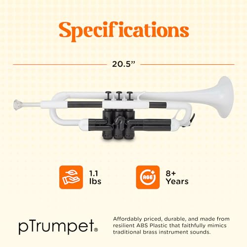 La nueva versión 2.0 de la pTrumpet ofrece el mejor rendimiento y calidad jamás visto en la categoría. Entre otras mejoras, los avances en la fabricación de válvulas y cajas han proporcionado tolerancias mejoradas que garantizan una mejor compresión y acción de la válvula. Otros cambios en el diseño y los procesos también han contribuido al rendimiento, la facilidad de reproducción y la respuesta. El Modelo 2.0 presenta un nuevo diseño de campana que ofrece una mayor facilidad de reproducción. Cuenta con tolerancias mejoradas en pistones y bloques de válvulas que garantizan una mejor compresión y rendimiento del instrumento, y una llave de agua tradicional para un acceso rápido y una respuesta segura. Todo esto viene en un nuevo embalaje que ahorra espacio marcado como 2.0. La pTrumpet pesa menos de la mitad que una trompeta de latón, por lo que es ideal para el músico más joven y para todos aquellos que puedan tener dificultades con el peso y el equilibrio. Su precio inigualable permite a todos disfrutar de la calidad de un instrumento de metal equivalente a un tercio del costo. Feliz en manos de los profesionales más experimentados del mundo, la pTrumpet también es el instrumento de iniciación perfecto. La pTrumpet es la primera trompeta totalmente de plástico del mundo. Hemos utilizado un diseño e innovación innovadores para crear una trompeta realizada completamente en plástico. Como resultado, la pTrumpet tiene una calidad de sonido notable, una jugabilidad fantástica y se ve genial y moderna. El paquete contiene (1) trompeta de plástico pInstruments pTrumpet. Campana de 4 3/4 pulgadas. Afinada en Si bemol. Sistema de válvula único. Llave de agua de plástico. Diapositivas de afinación del 1º y 3º pistón ajustables. Duradero ABS y fibra de vidrio. Peso de 500 g. Bolsa de transporte de tela incluida.