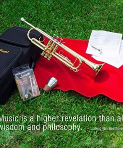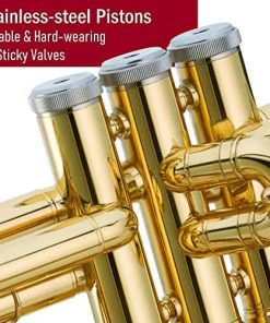 La Trompeta Estándar Libretto, fabricada con métodos de producción de última generación, es una trompeta para estudiantes probada diseñada para promover un rápido desarrollo musical y mejora. Desde la adquisición de materiales hasta el montaje final y la inspección de calidad, se toma en consideración cada detalle específico al crear la Trompeta Libretto. El tubo de cabeza de latón rosa premium resiste la corrosión. Los pistones de acero inoxidable duraderos y resistentes proporcionan una acción de válvula rápida y suave. No se preocupe por válvulas pegajosas o atascadas, la Trompeta Libretto funciona bien sin mantenimiento frecuente. El peso equilibrado y la adición del anillo de ajuste de la válvula 3ra permiten una posición de la mano natural y promueven la técnica de reproducción adecuada. El trompeta de latón amarillo tiene un tono brillante y enfocado. Junto con un tamaño de de tamaño mediano-grande, el tamaño de campana de 5″ proporciona una reproducción suave y tonos oscuros y suaves. Una campana más grande ayuda a proyectar su interpretación de manera más efectiva y sobre una área más amplia.