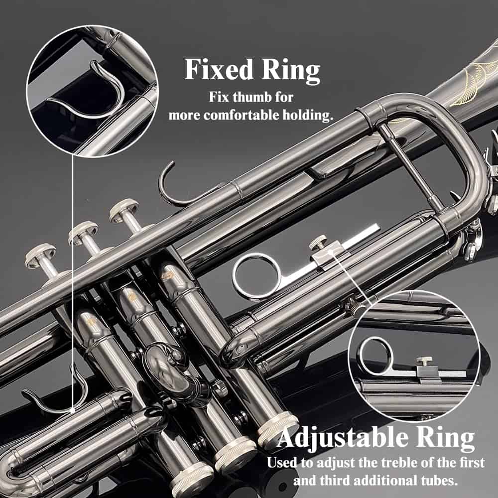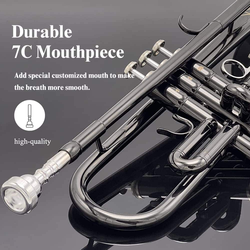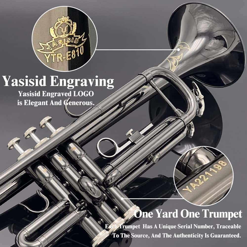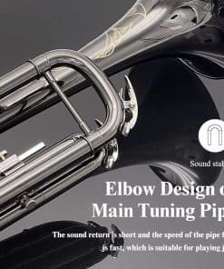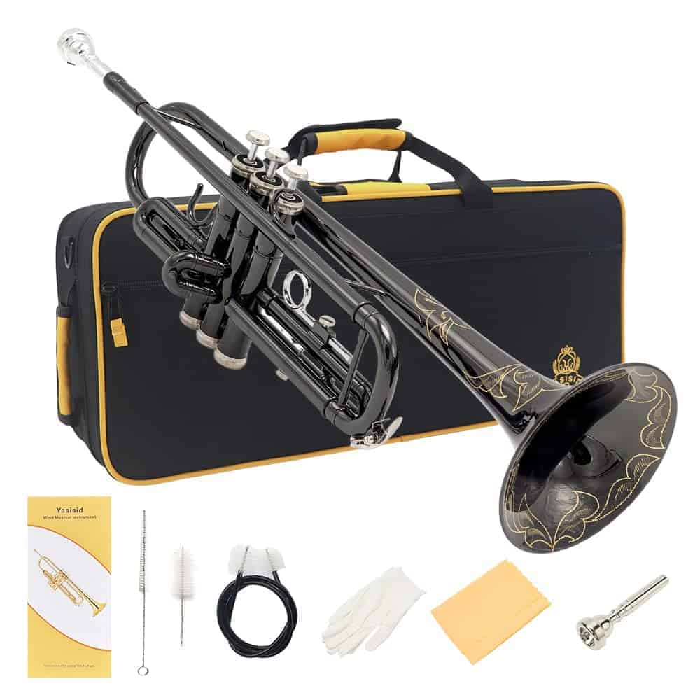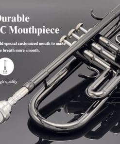 1. Gran Trompeta para Principiantes: El sonido de la Trompeta YASISID es fuerte, claro y agudo. La Trompeta Estándar es ideal para adultos principiantes y usuarios aprendices. Este es un excelente instrumento para cualquier uso. 2. Diseño Elegante: La Trompeta YASISID consta de boquilla, cuerpo de tubo y tres partes mecánicas. El diámetro de la campana es de 123mm, el diámetro del tubo es de 11.65mm y la longitud del tubo es de 1.355 metros. 3. Excelente Artesanía: Cuerpo de latón sólido y duradero, artesanía de pintura electrolítica de alta calidad, diseño de válvula dual duradera impermeable, pistón de acero inoxidable sensible, rápida recuperación de resorte y buena estanqueidad al agua, buena estanqueidad. 4. Tono Equilibrado: Esta trompeta para principiantes bien elaborada para adultos produce un sonido penetrante, potente y vibrante. Se pueden tocar melodías de elevación, así como pasajes líricos y hermosos. 5. Paquete Contiene: Trompeta de latón YASISID 68, estuche rígido de alta calidad, boquilla 7C, guantes, paño limpiador, un juego de cepillos de limpieza, una bonita bolsa de mochila.