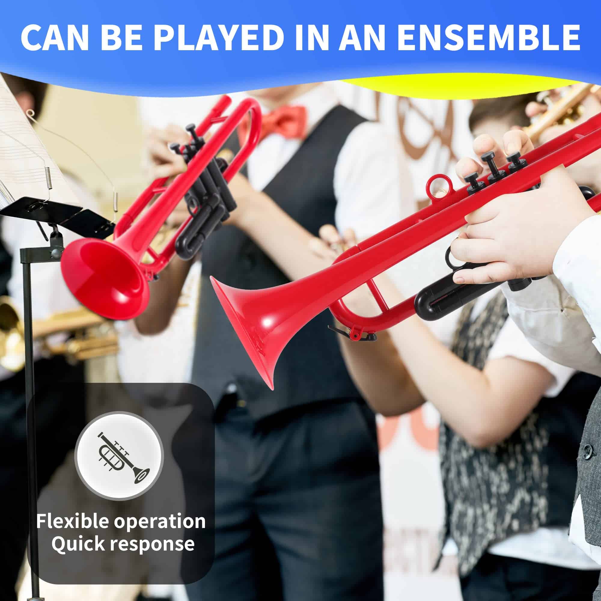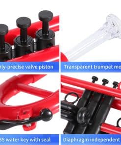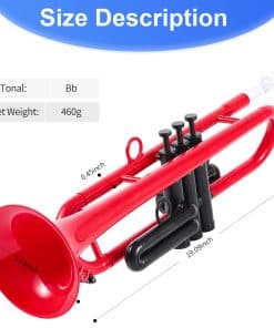 Modelo: 160 Marca: PAMPET Producto: Trompeta de Plástico Cuerpo: Ingeniería Acústica Ligero Peso. ABS Duradero, Latón. Colores: negro rojo azul Clave: Bb o C Diámetro del Tubo: 11.65mm Diámetro de la Campana: 128mm Peso Neto: 460g Las partes centrales han sido probadas a baja temperatura -25 y alta temperatura 75. Prevención de daños y superficie fácilmente limpiable, Apariencia Brillante de Alta Resistencia. El diseño ergonómico integra la apariencia, agarre y sensación y fuerza de apretón en uno. Acepta cualquier boquilla de metal regular Nuevo diseño de boca curvada para un sonido más penetrante. El tubo de silbato de latón permite que el impacto se transmita a gran velocidad. Diapositivas de Afinación Principal, 1ª y 3ª Válvula Aros de Disparo en 1ª y 3ª Diapositivas Válvula 2 Extraíble Llaves de Agua de ABS con Sellos de Silicona Boquillas de Trompeta