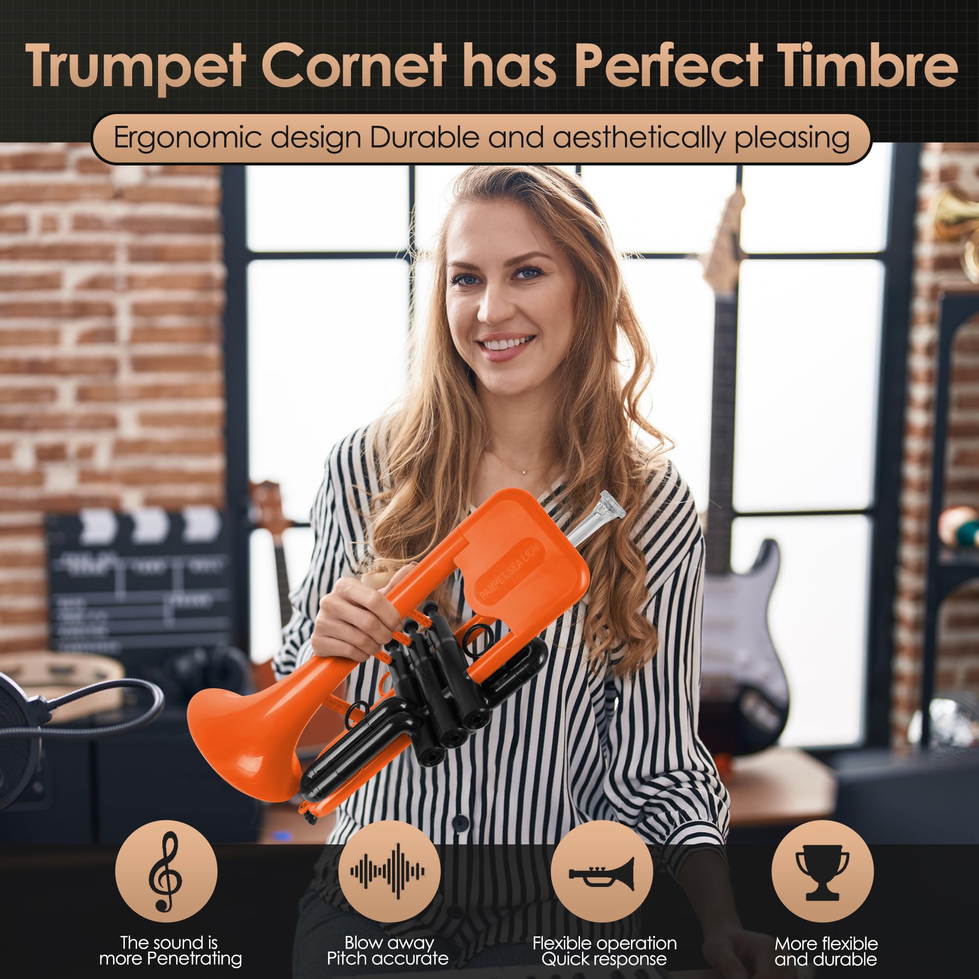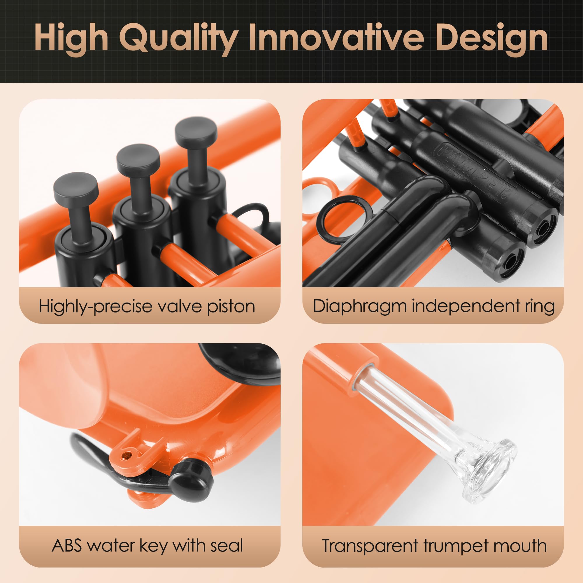 La trompeta PAMPET SEA LION Cornet está utilizando un diseño innovador y fabricación para crear. La trompeta PAMPET SEA LION Cornet utiliza la construcción compuesta de ABS duradero y latón en la creación de sus instrumentos para reducir el peso, optimizar la vibración del instrumento. La trompeta PAMPET SEA LION Cornet se encuentra en la vanguardia de la innovación en trompetas Cornet. Utilizando nuestros años de experiencia en fabricación y las técnicas de fabricación de instrumentos con materiales más nuevos, hemos diseñado una trompeta Cornet única. La trompeta PAMPET SEA LION Cornet tiene un timbre perfecto, entonación precisa, respuesta muy directa, sonido completo, mayor resistencia, excelente respuesta y alta flexibilidad. Tanto para tocarla como trompeta Cornet principal y en ensambles pequeños. El equipo de PAMPET ha dedicado más de 100,000 horas de investigación y desarrollo, y numerosas mejoras en donde se genera el sonido. El sistema de válvulas único de la trompeta PAMPET SEA LION Cornet con válvulas intercambiables. La vara de guía, el pabellón y las varas de afinación han sido moldeadas individualmente para ofrecer una resonancia libre.