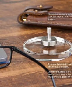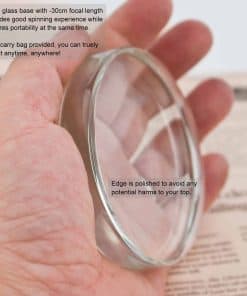 Para este modelo, proporcionamos una base de vidrio cóncava de 3.15″ con una longitud focal de -30cm (altamente pulida a mano). Después de algunos ejercicios, un adulto hábil podría fácilmente hacerlo girar durante 6-8 minutos en esta base. Para garantizar la portabilidad, tenemos que sacrificar el tamaño de la base. Tendrás que practicar algún tiempo antes de poder lograr un buen giro en ella.