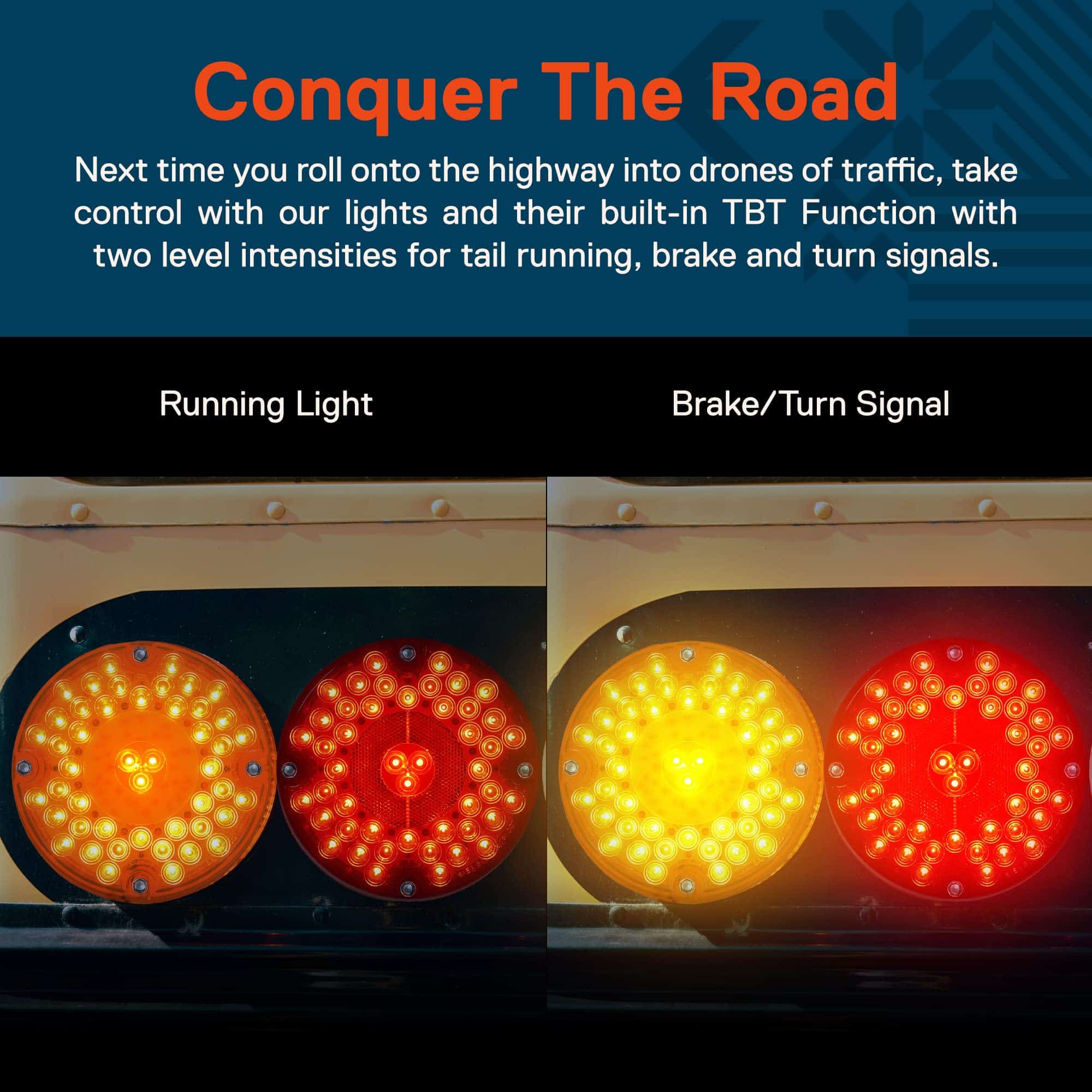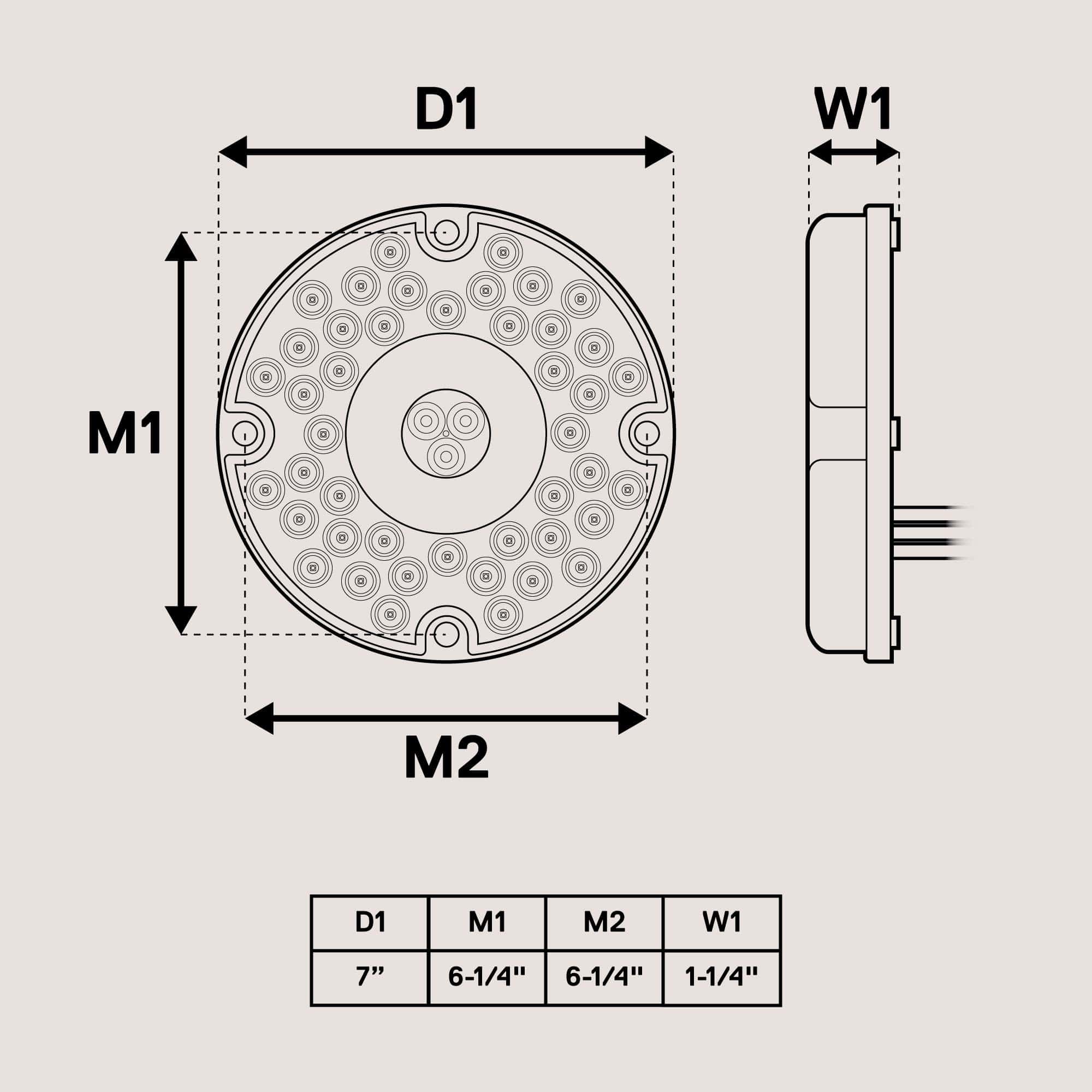 Características Luces traseras redondas de 7″ aprobadas por DOT-FMVSS-108 (ÁMBAR) SAE I6 / (ROJO) SAE AI6P2S2(3) Función TBT