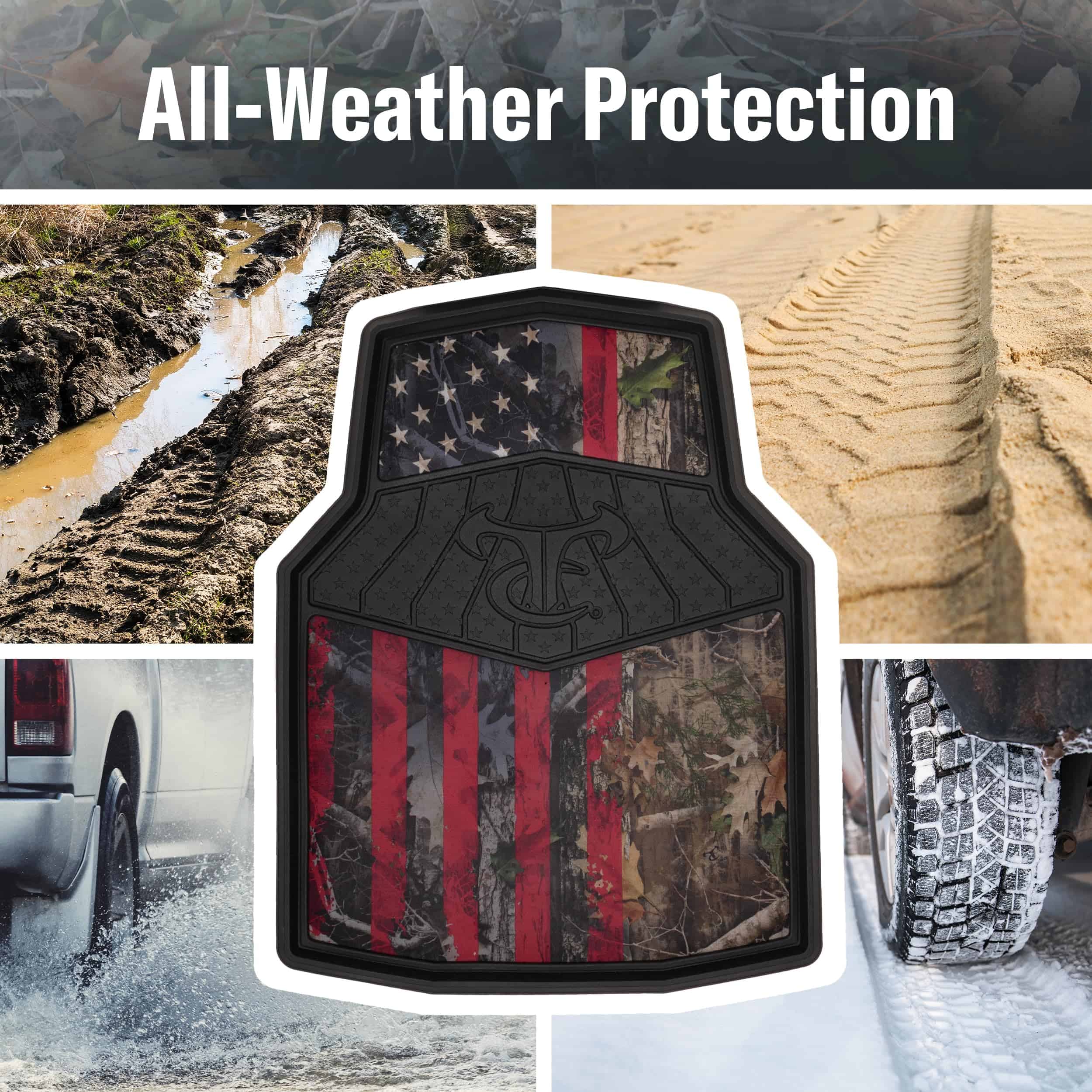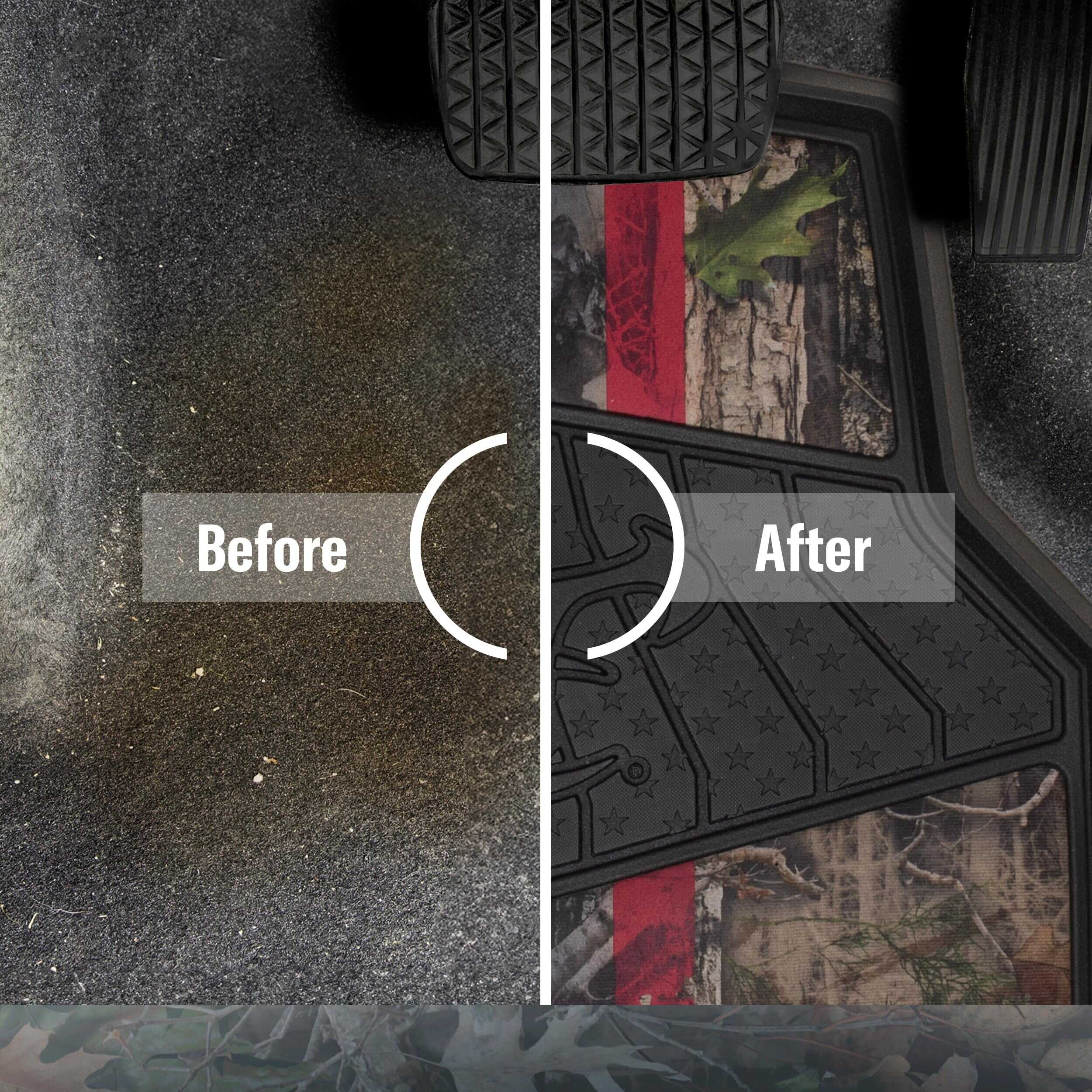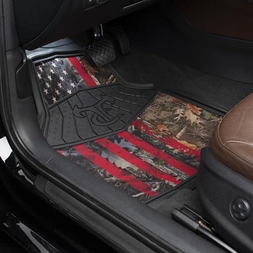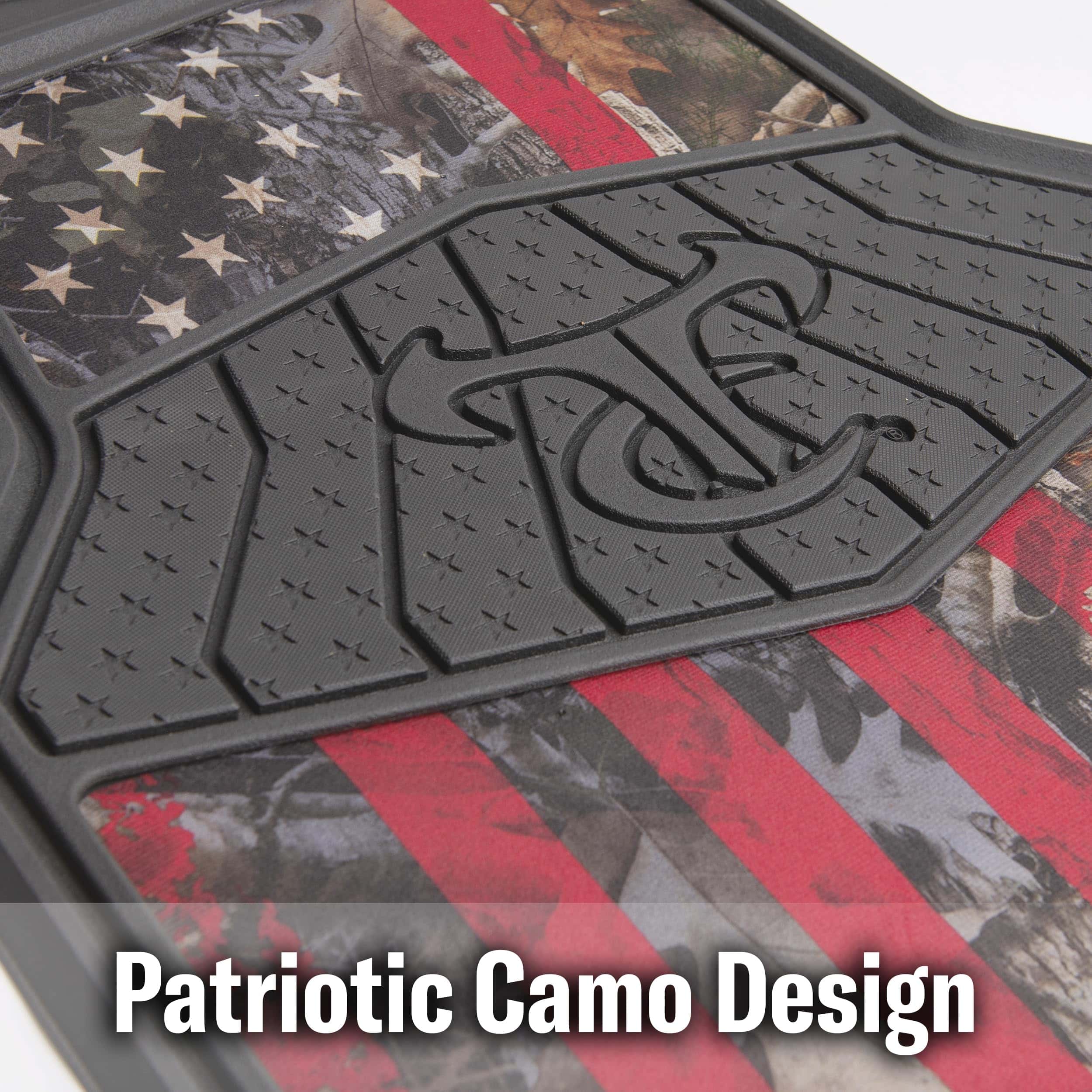 Demuestra tu espíritu patriótico mientras proteges tu vehículo con estos resistentes TrueTimber Juego de Tapetes 4 Piezas Kanati Freedom No-Trim. Fabricados con un material de polímero duradero, estos tapetes de repuesto están diseñados para entusiastas del aire libre. Construidos de mayor tamaño para proporcionar una cobertura máxima, cuentan con un diseño esculpido que está moldeado para atrapar suciedad, sal de carretera, barro y arena. Los canales acanalados también alejan el agua y la suciedad de tus pies. Para mejorar aún más el aspecto, el distintivo diseño de camuflaje Kanati también se combina con las icónicas estrellas y rayas rojas, blancas y azules de la bandera estadounidense. Este juego de tapetes para todo clima está diseñado para mantenerse flexible incluso en las temperaturas más frías y presenta un acabado protector y antiadherente para facilitar la limpieza. Una base antideslizante evita que los tapetes se deslicen y se muevan. Suficientemente anchos para camionetas, furgonetas y SUVs de tamaño completo, estos tapetes de todas las estaciones están diseñados para brindar un ajuste universal que no requiere recortes. Haz una declaración con la marca de camuflaje de más rápido crecimiento en Estados Unidos y consigue hoy estos TrueTimber Juego de Tapetes 4 Piezas Kanati Freedom No-Trim.