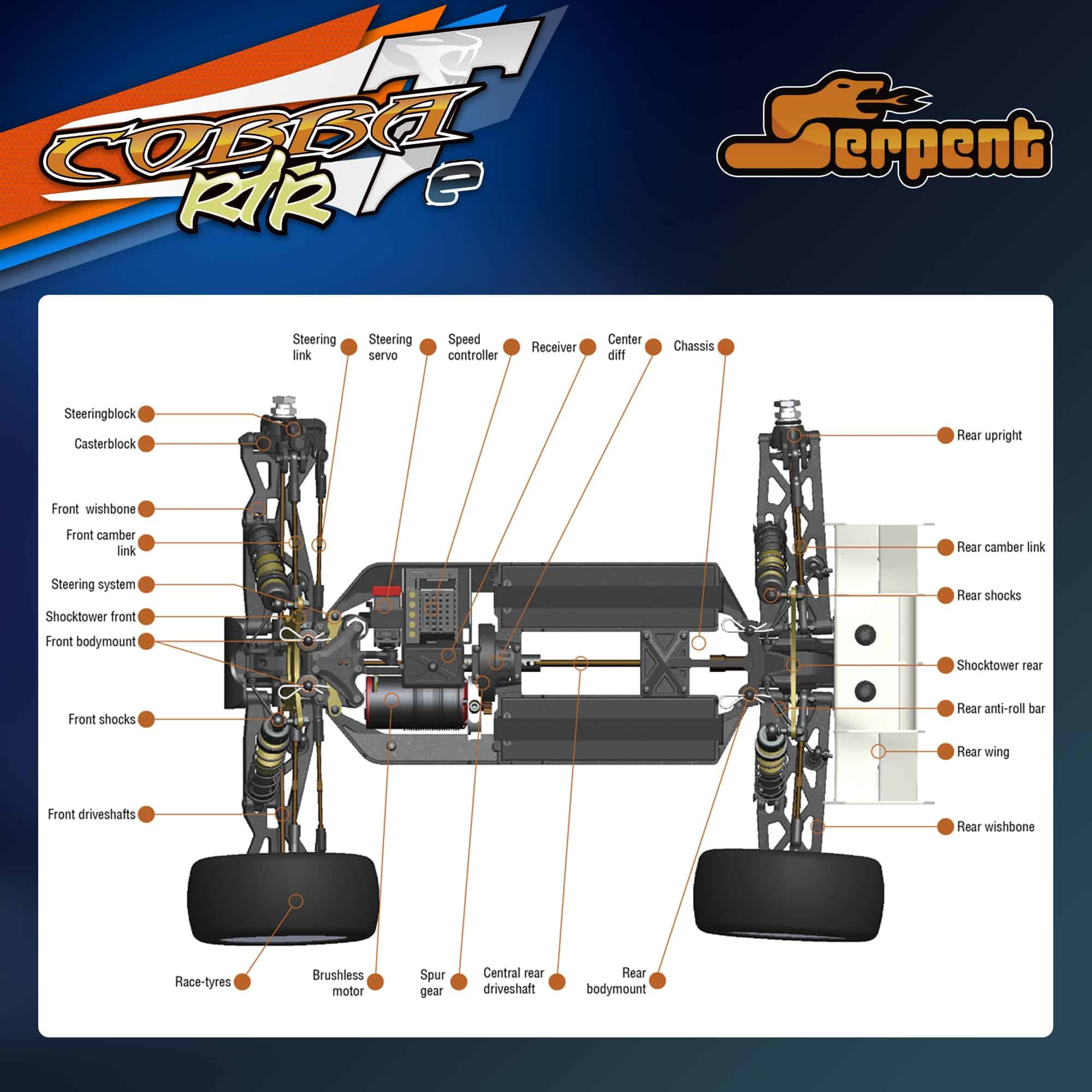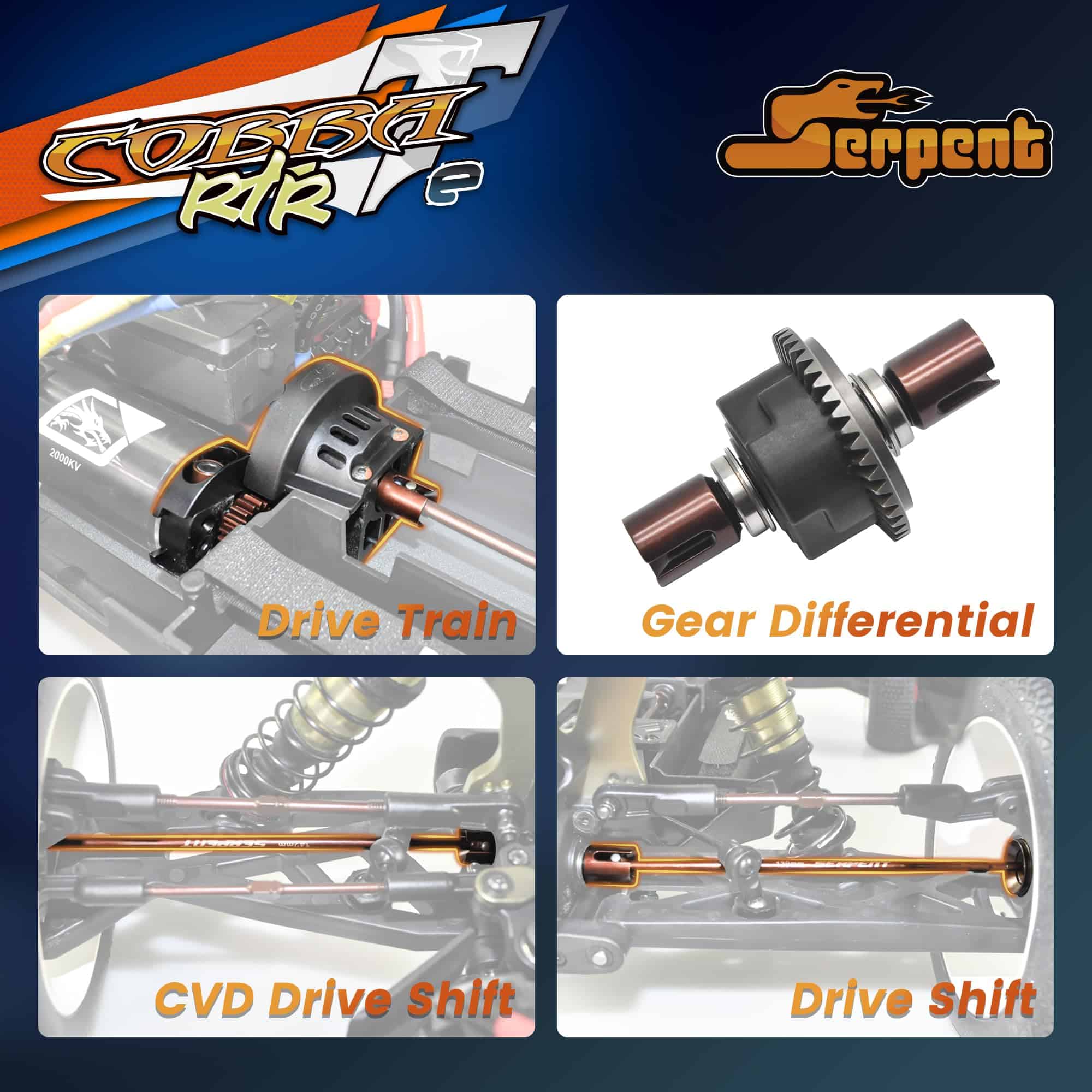 1. Experiencia Definitiva Listo para Correr: El Serpent Cobra Truggy-e RTR 1/8 ofrece un emocionante paquete listo para correr que combina una durabilidad extrema con un rendimiento de alta velocidad. Ensamblado de fábrica y preajustado, este E-Truggy a escala 1/8 está equipado con componentes de primera calidad para una experiencia de carreras excepcional.