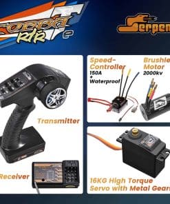 2. Electrónica Potente: Experimenta un poder sin igual con el controlador de velocidad impermeable de 150A (4-6S) y un potente motor sin escobillas de 2000kV. El transmisor digital de 2.4 GHz proporciona un control preciso, mientras que el servo DragonRC-Savox de metal con engranajes de 16 kg garantiza una respuesta de dirección precisa incluso en las condiciones más difíciles.