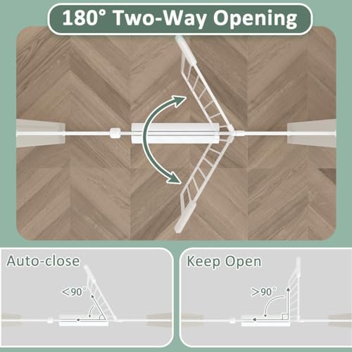 4. PUERTA CON PUERTA PARA BEBÉS – La puerta puede abrirse en ambas direcciones. Además, la puerta de nuestra puerta para bebés tiene funciones de auto-cierre y auto-bloqueo. No necesita preocuparse por olvidar cerrar la puerta, se cerrará automáticamente cuando se abra menos de 90 grados, puede abrir la puerta con una sola mano.