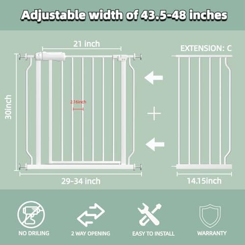 1. ¡IDEAL PARA LA MAYORÍA DE LAS ABERTURAS! Nuestra puerta blanca es adecuada para diferentes puertas! Elija entre aperturas de 25″-76.37″. Tenemos diferentes tamaños de puertas para bebés, no incluye todas las extensiones, la extensión que recibas depende de la apertura de tu puerta. Ya sea que tu puerta sea ancha o estrecha, puedes encontrar la puerta para bebé o para mascotas adecuada. Y nuestra amplia puerta de paso facilita caminar cuando se sostiene al bebé.