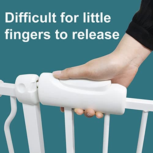 4. PUERTA DE BEBÉ CON PUERTA – La puerta puede abrirse en ambas direcciones. Además, la puerta de nuestra puerta de bebé tiene funciones de auto-cierre y auto-bloqueo. No tienes que preocuparte por olvidar cerrar la puerta, se cerrará automáticamente cuando se abra a menos de 90 grados, puedes abrir la puerta con una sola mano.